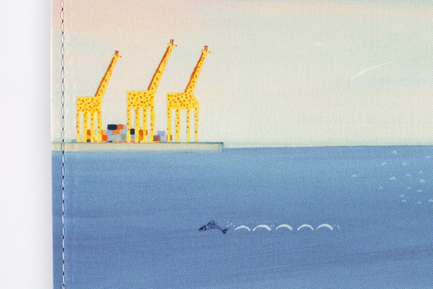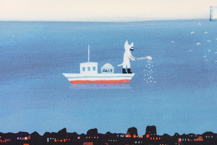 一隻乘著小船的白貓,正忙著為大海進行「鹽分調節」。