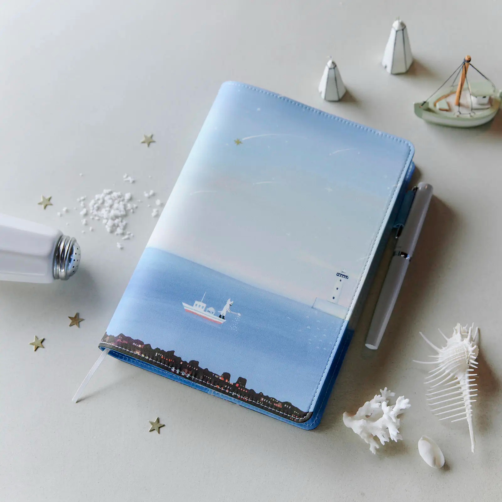 翻開封面,內襯延續了天空與海洋的景色。