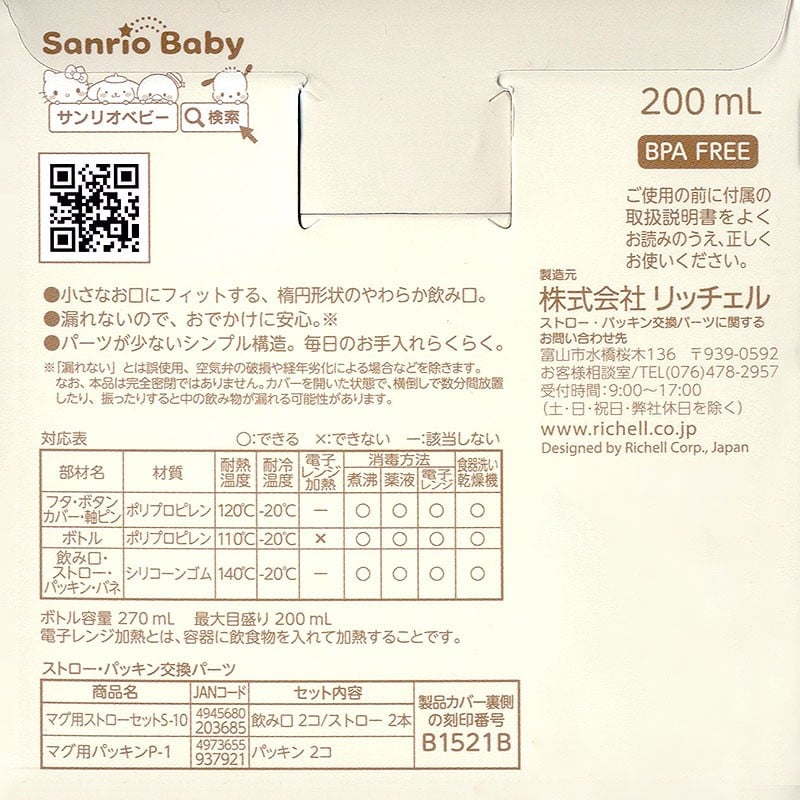 【現貨】日本三麗鷗 Richell 吸管學習杯 水果款 (Sanrio Baby)