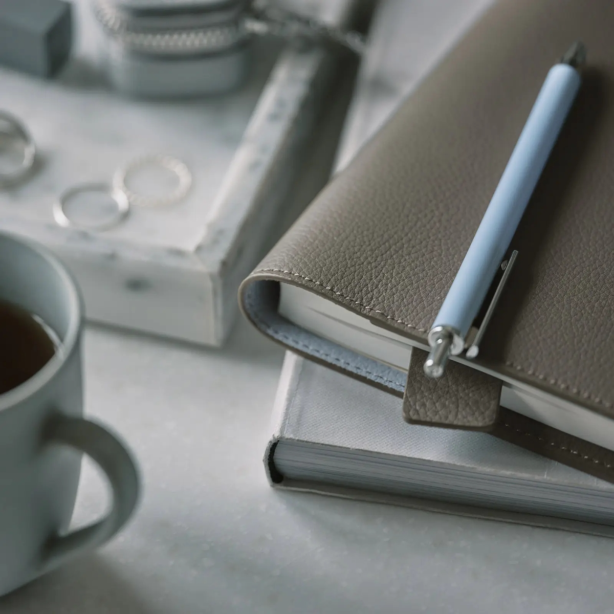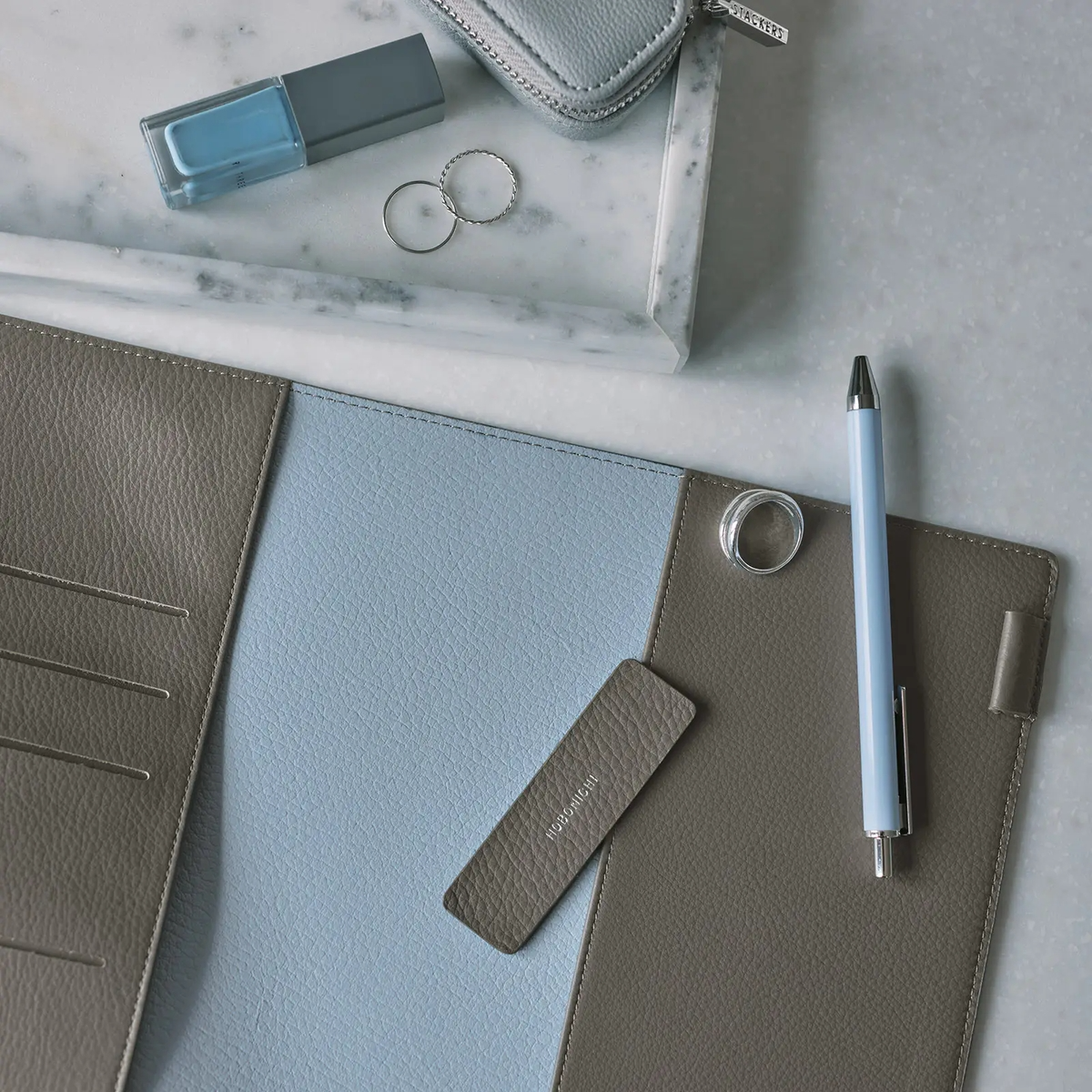 【預購】HOBO日手帳外皮 A5大本 Taut 暖灰x淺藍 牛皮書衣 瘦身版 牛革書皮 Gray Light Blue