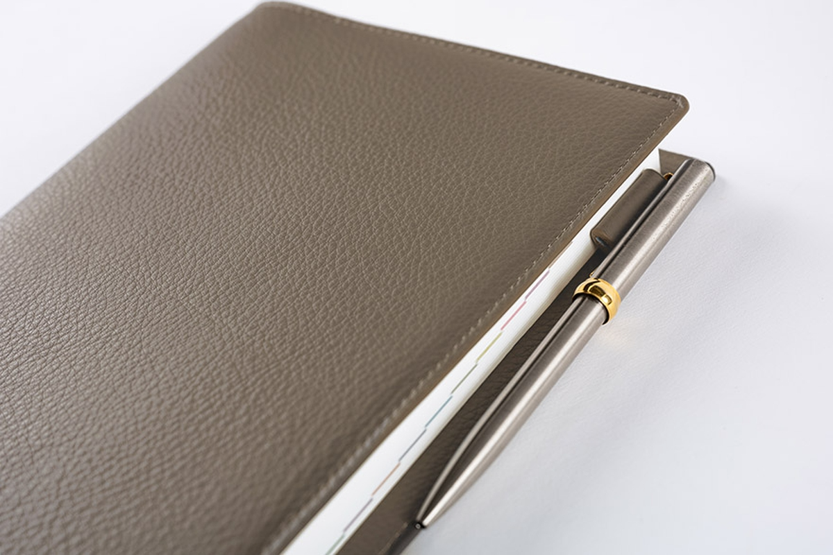 這是一款能 緊密貼合手帳本體 的極簡皮革書衣「Taut(タイト)」。