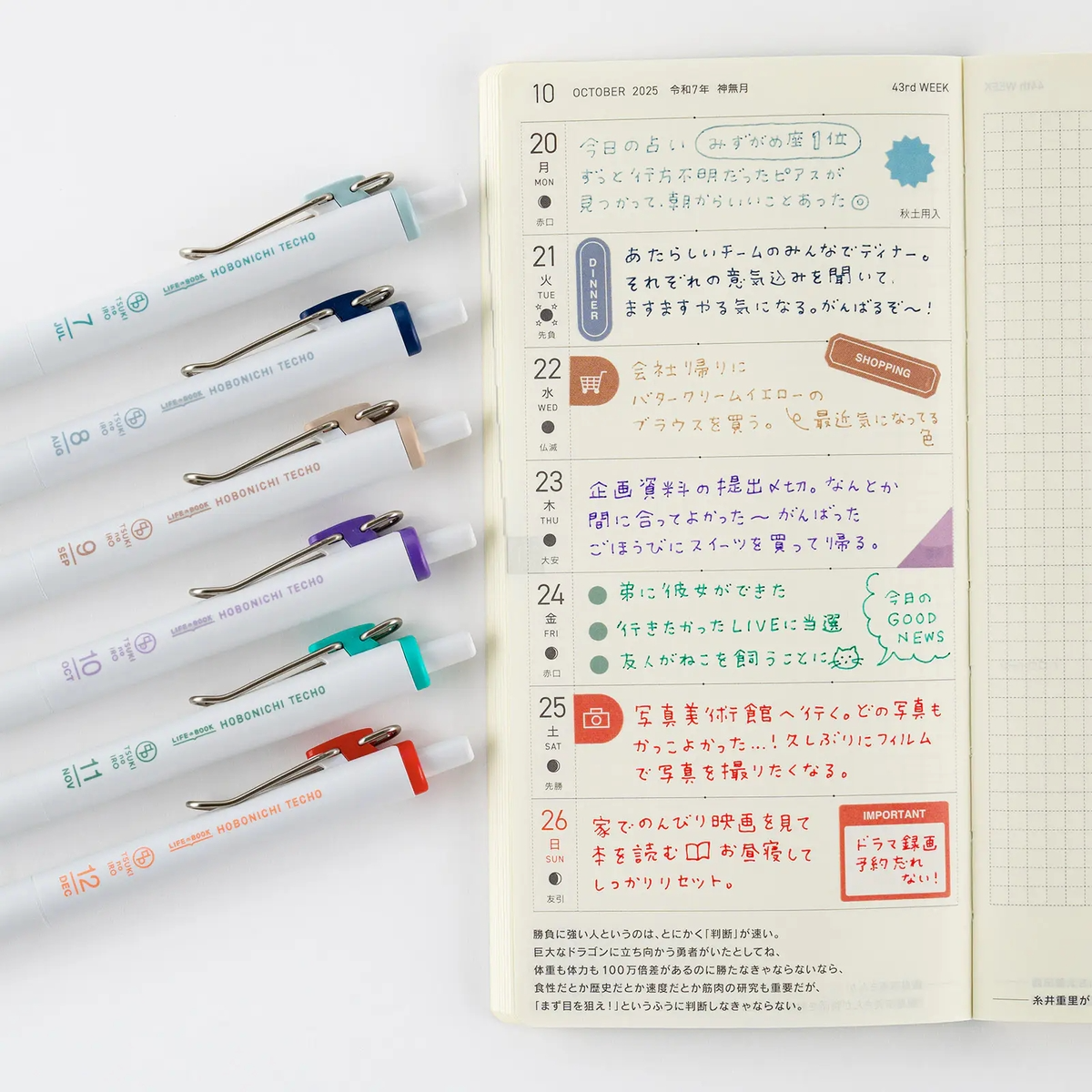 精選出與 ほぼ日手帳本體每月印刷色相對應的 12 支筆,
