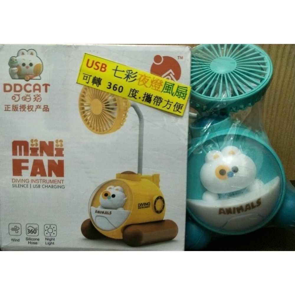 萌趣 叮噹貓 潛水艇 / USB 迷你風扇 / 七彩夜燈 風扇 / 可轉360度 / 攜帶方便