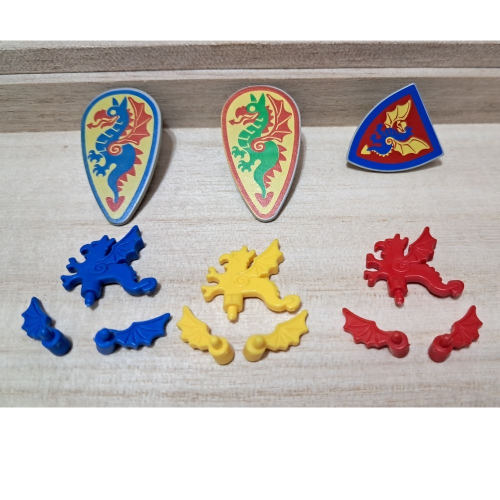 Lego 舊版藍、黃、紅龍徽章附圖示盾組合