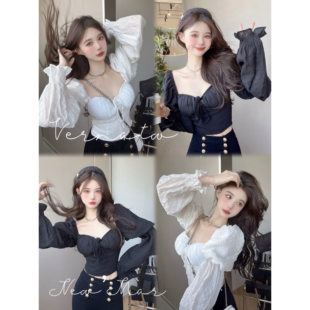 微甜氛圍泡泡袖短款上衣