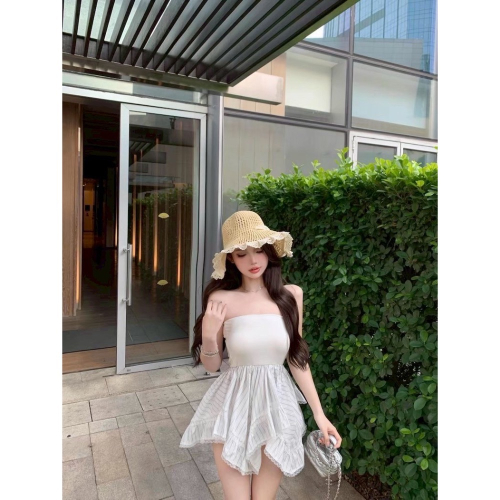 微性感平口衣+草帽太有出遊氛圍囉