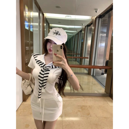 夏日休閒‘翻領上衣x裙子x披肩三件套