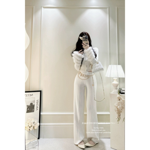 韓國高訂款🤍 溫柔奶白針織毛上衣x長褲套裝