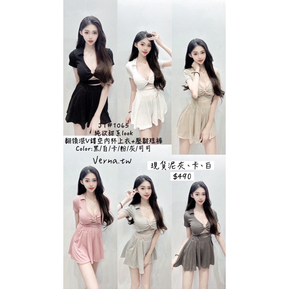 現貨 純欲甜系look 翻領深V鏤空內杯上衣+壓皺短褲
