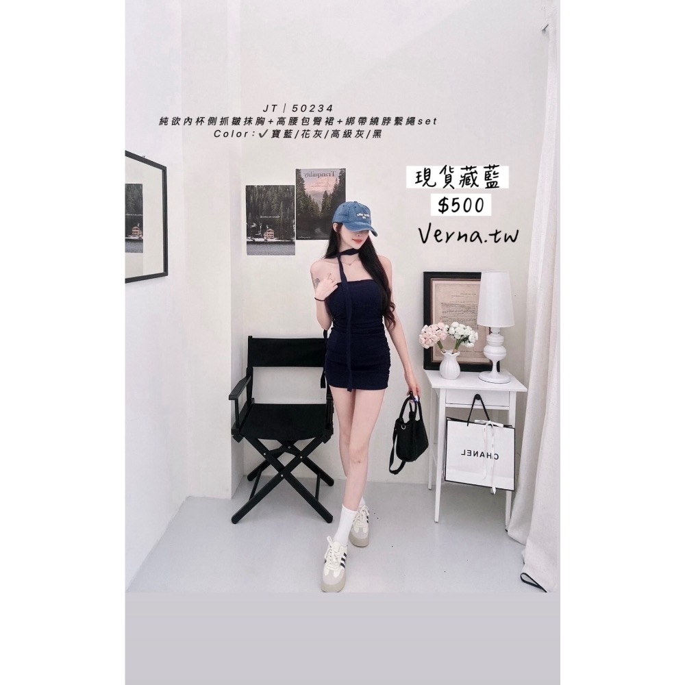 現貨 純欲內杯側抓皺抹胸+高腰包臀裙+綁帶繞脖繫繩set