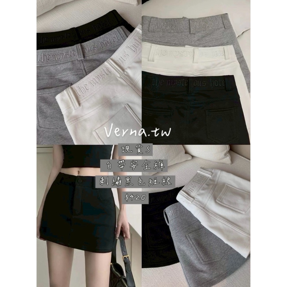 現貨 自帶安全褲 刺繡黑色短裙
