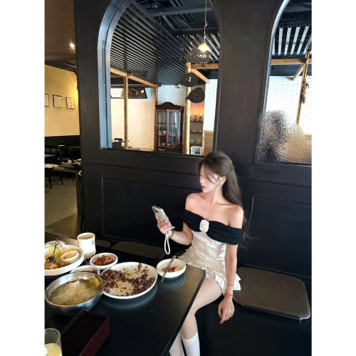 🤍 黑白玫瑰一字領上衣 🤍