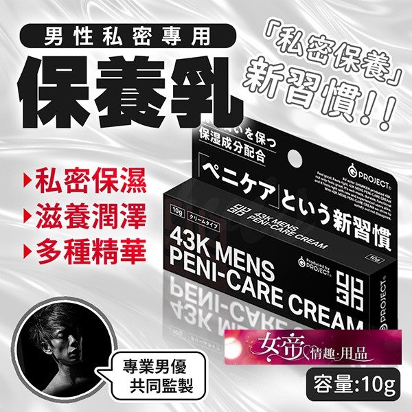 日本 G PROJECT 推出的 43K Peni-Care 男性私密處保養乳液,專為男性私密部位設計。由知名 AV 男優 清水健因應多年的肌膚保養需求,特別研發出的專屬乳液。此款乳液帶來全新的「私密保養」概念,適合重視日常清潔與舒適感的男性。