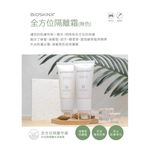 RIOBIO / BIOSKINX 品名:全方位隔離霜 無色 / 全效 30ml 長江生醫&健茂生技 臺灣製造