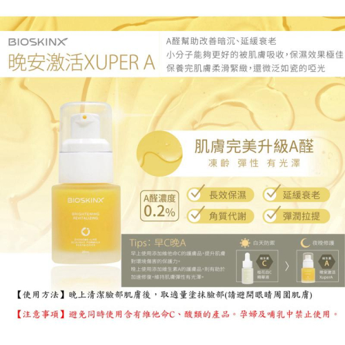 RIOBIO / BIOSKINX 品名:晚安激活Xuper A (A醛) 20ml/瓶 長江生醫&健茂生技 臺灣