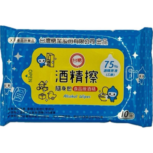 品名:台糖酒精擦隨身包 用途:手部清潔、用品擦拭 全成分:嫘縈不纖布、酒精(原液濃度75%) 規格:20x14cm 數量:10抽/包 製造日期:標示於包装 產地:台灣  保存期限:3年 保存方法:請置於陰涼處,避免高溫環境置放