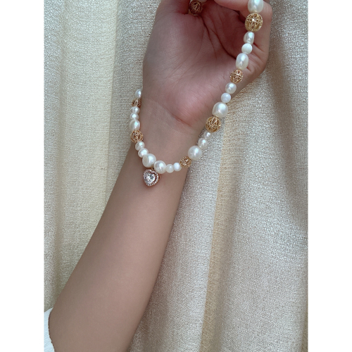 材質:淡水珍珠、銅鍍14K金、鋯石