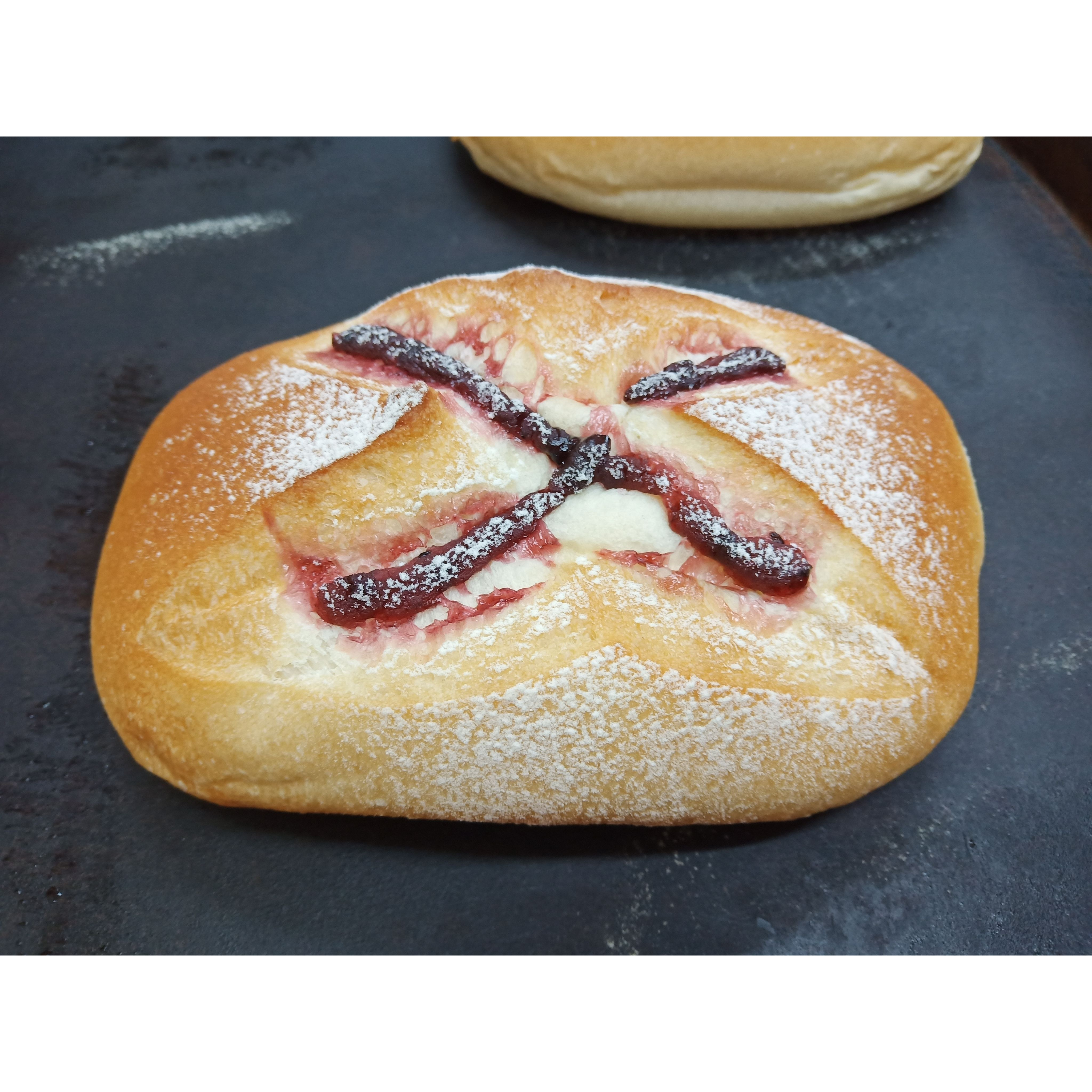 成分:無漂白麵粉、水、油、糖、鹽、酵母、市售藍莓醬