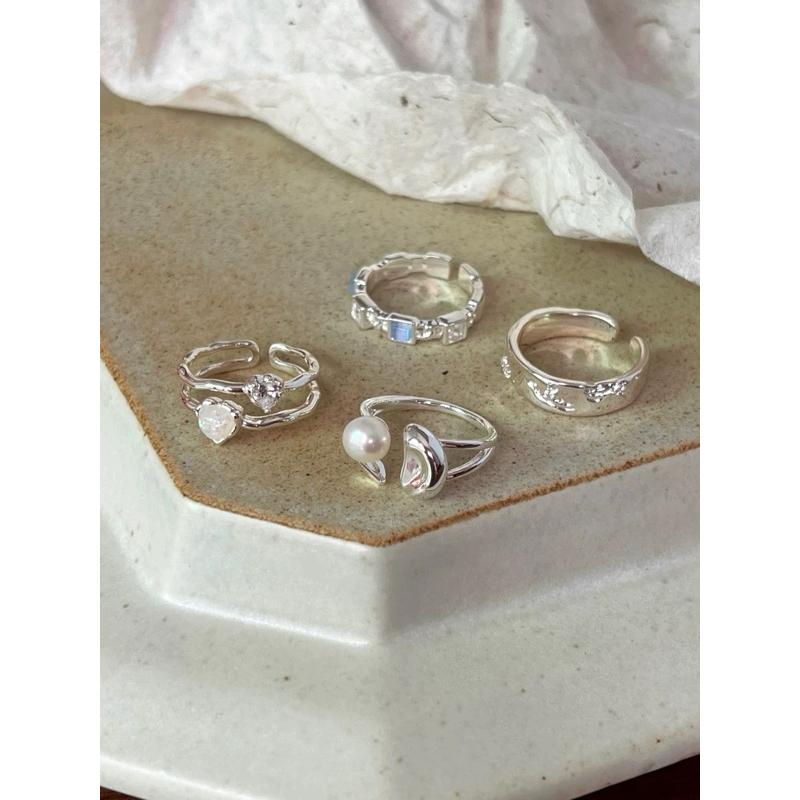 E’nes 🇰🇷 Eau Capitale 夢幻白愛心銅鍍亮銀開口戒指