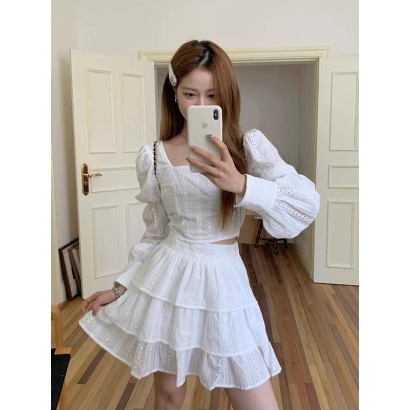 材質:棉 尺寸: 上衣S M 胸圍86 90 袖長71 71 衣長25 26 短裙S M 腰圍64 68 裙長40 41