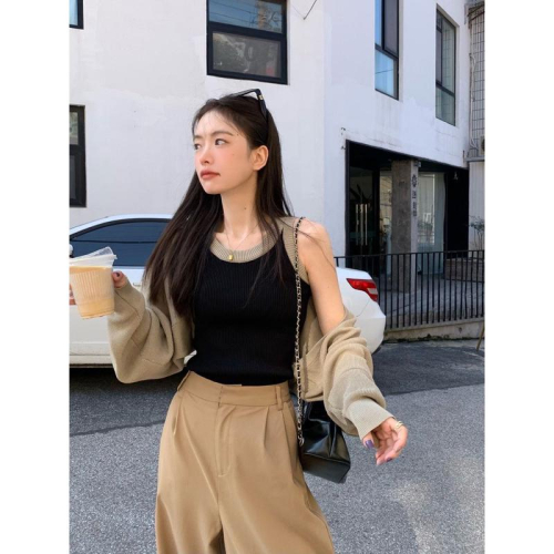 E’nes 🇰🇷 가을 신 상품 du melo 撞色背心長袖外搭針織套