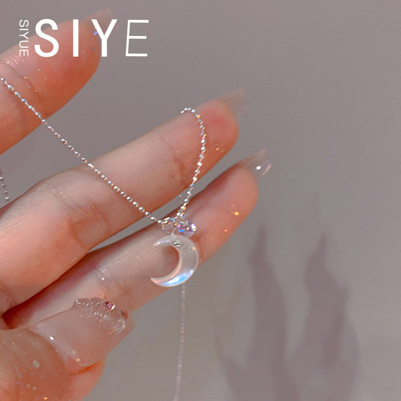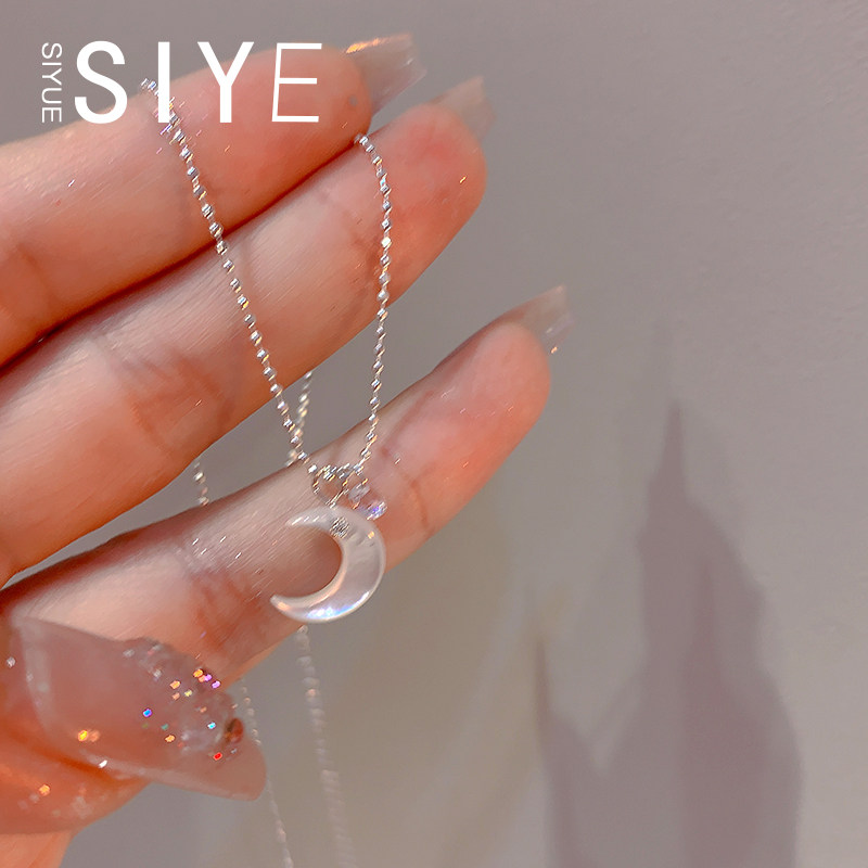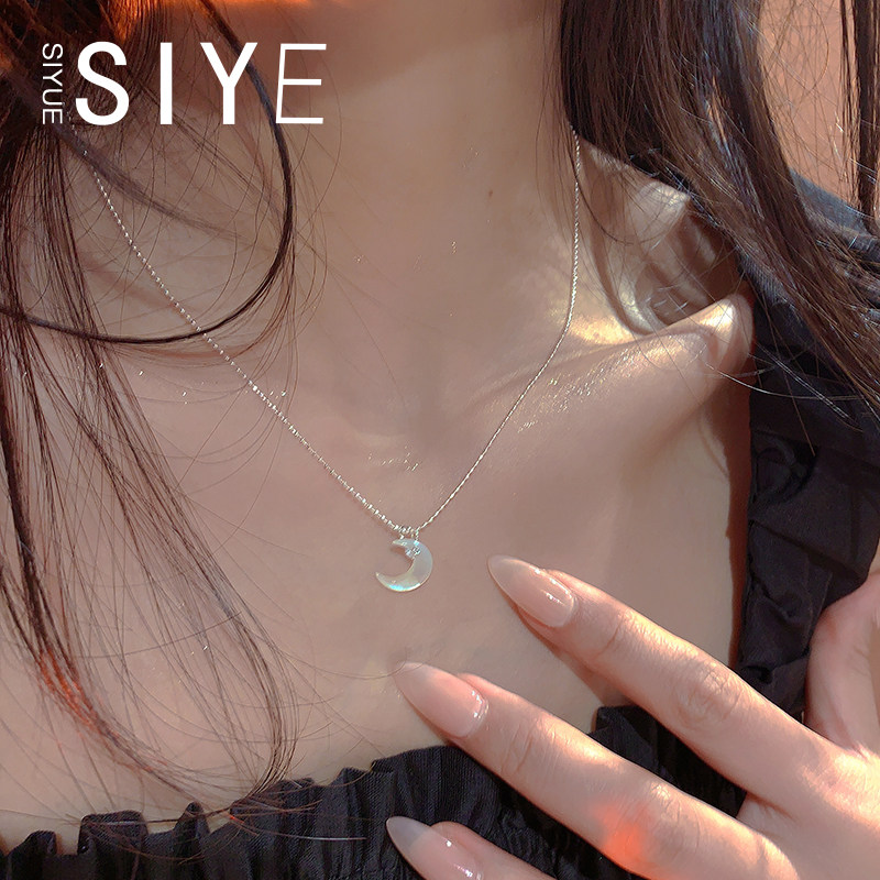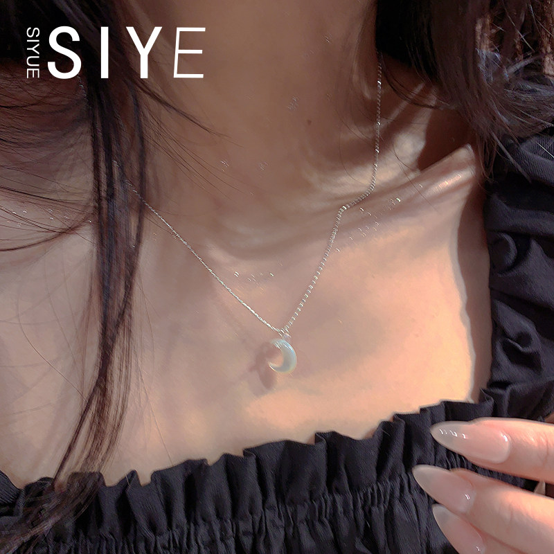 白月光 | 碎銀子項鍊女款新款爆款極細鑲鉆鎖骨鍊白色貝殼月