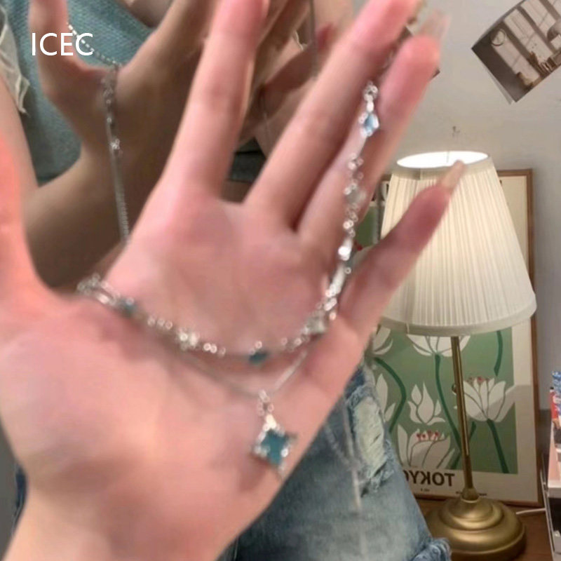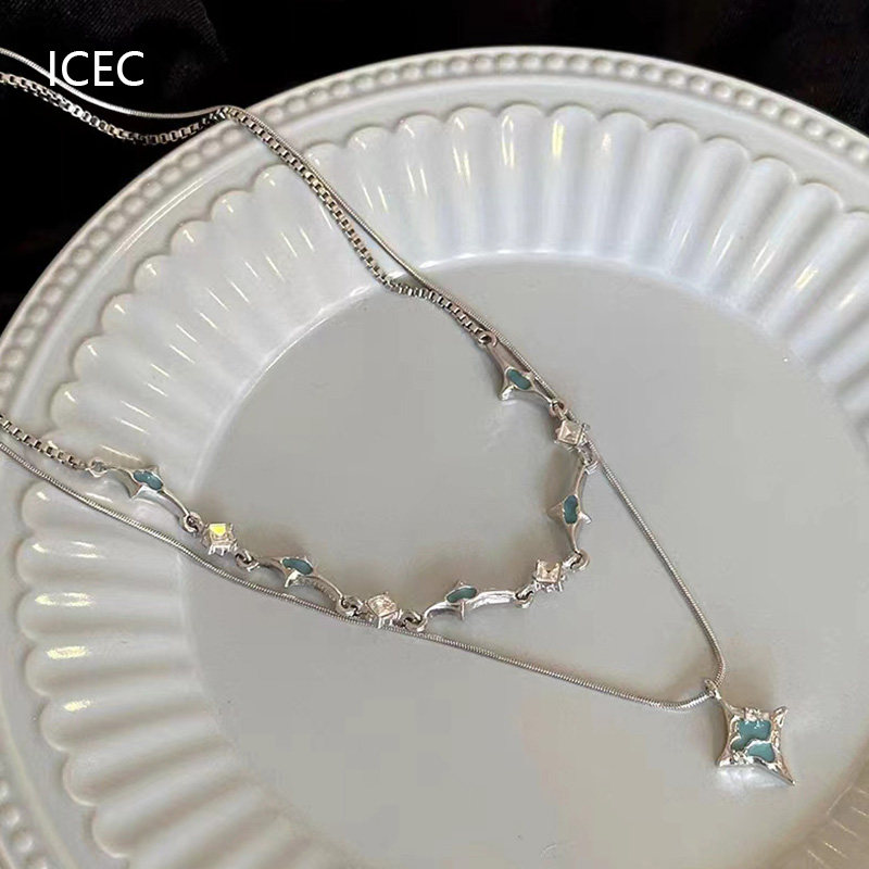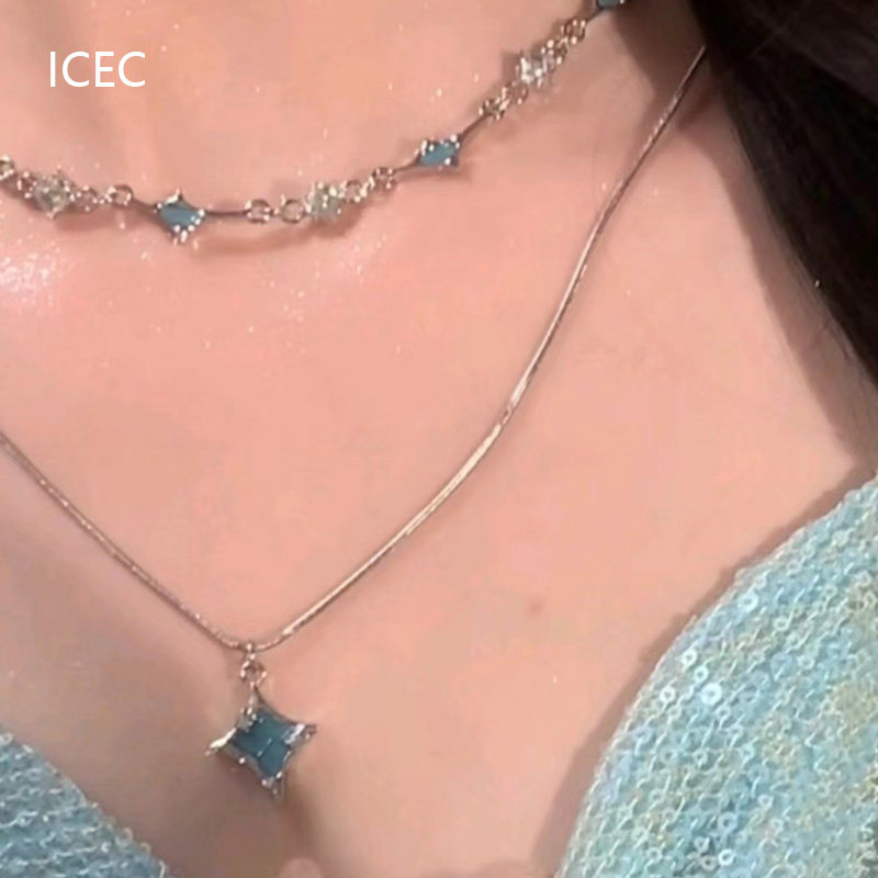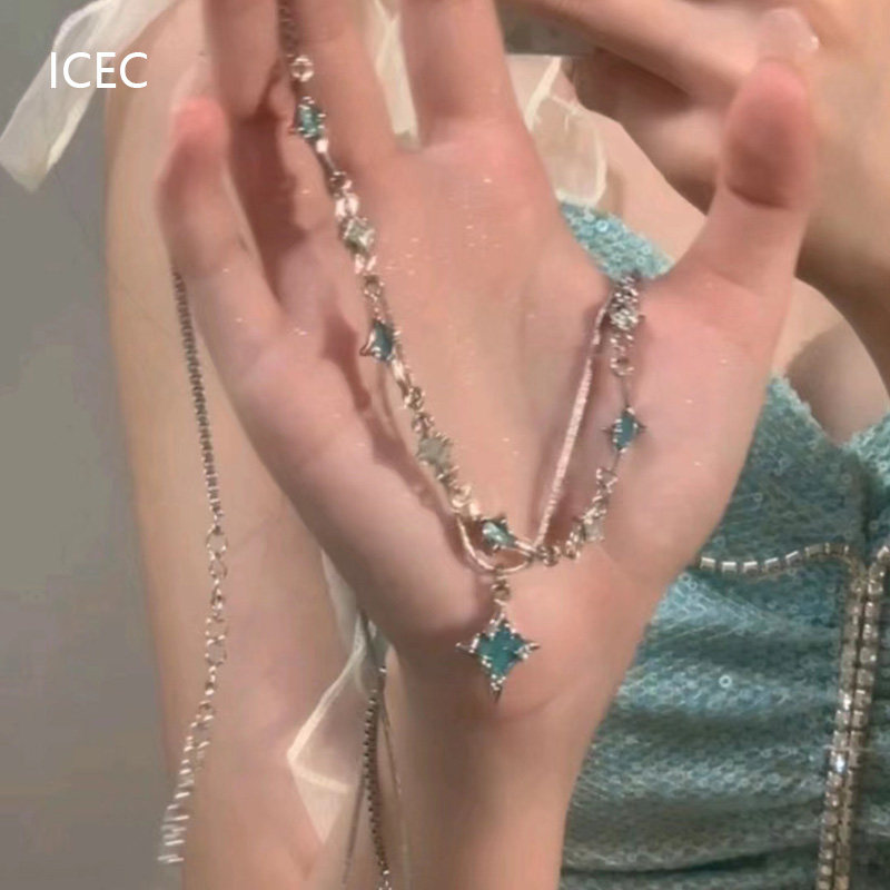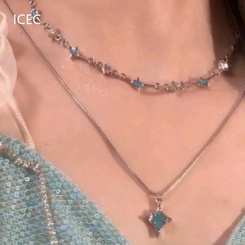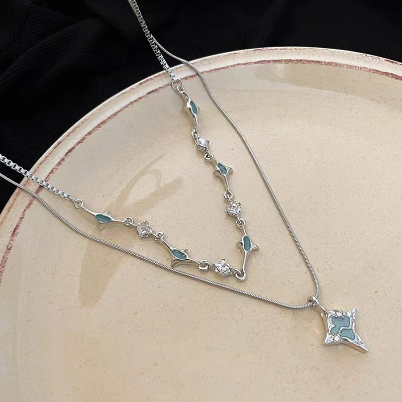 藍色四芒星雙層疊戴項鍊女輕奢高級感小眾冷淡風設計師鎖骨鍊夏季