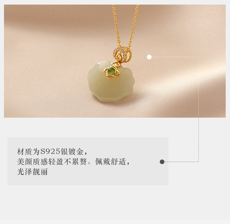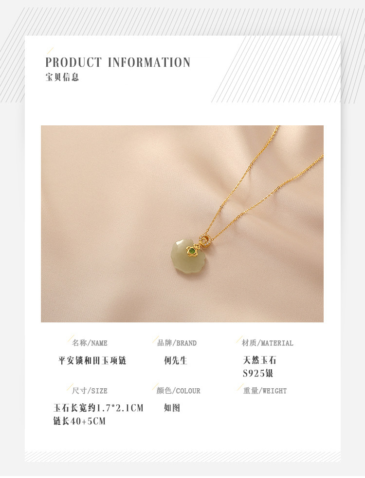 天然玉石平安鎖和闐玉項鍊女925純銀小眾輕奢氣質簡約百搭鎖骨鍊
