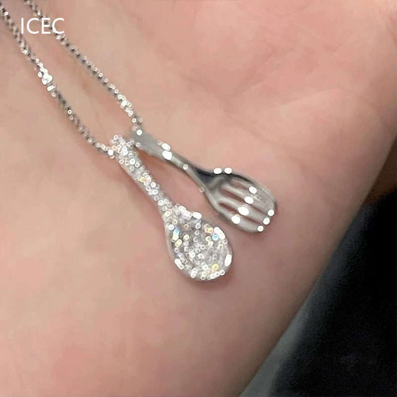 S925純銀干飯人叉勺吊墜項鍊輕奢小眾設計高級感爆款鎖骨鍊不掉色