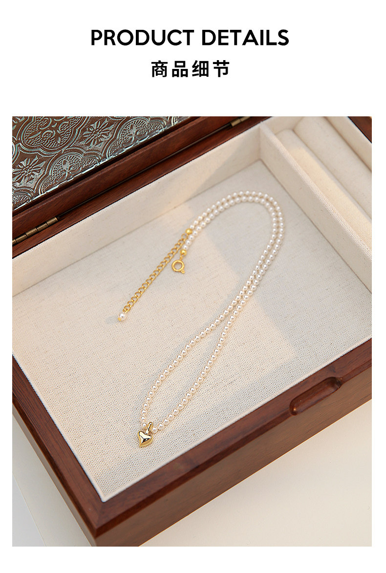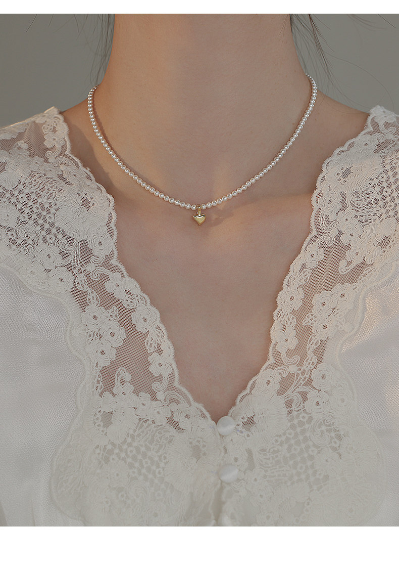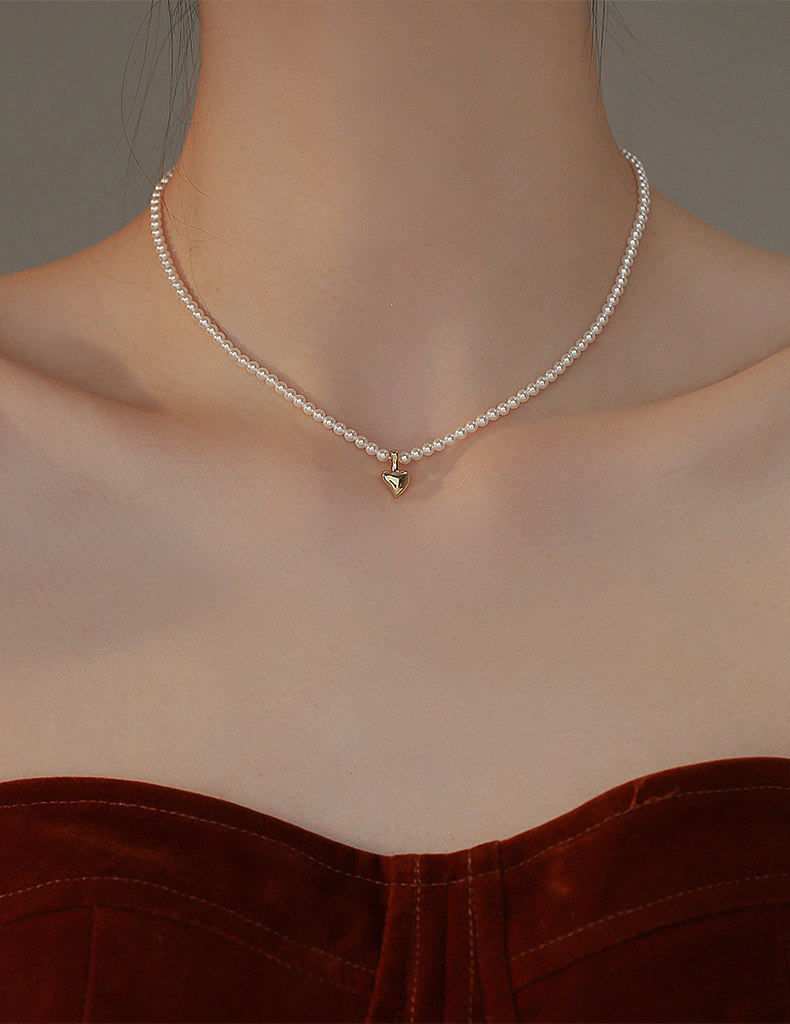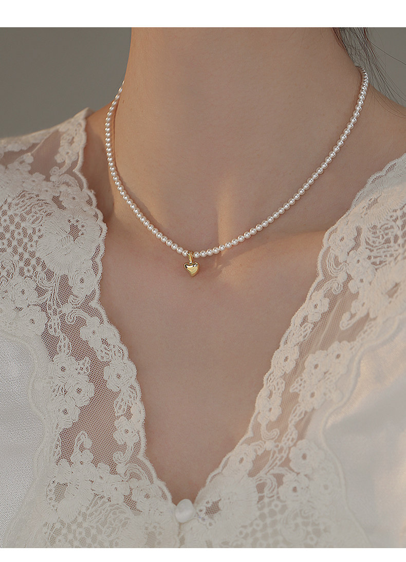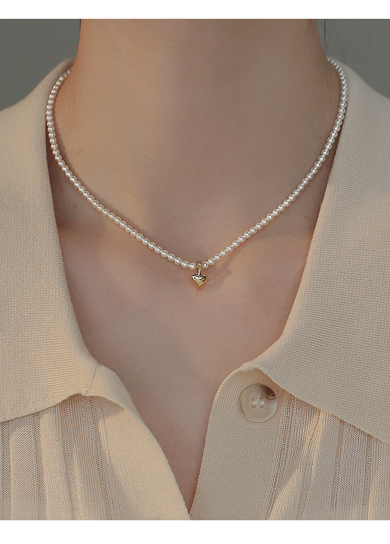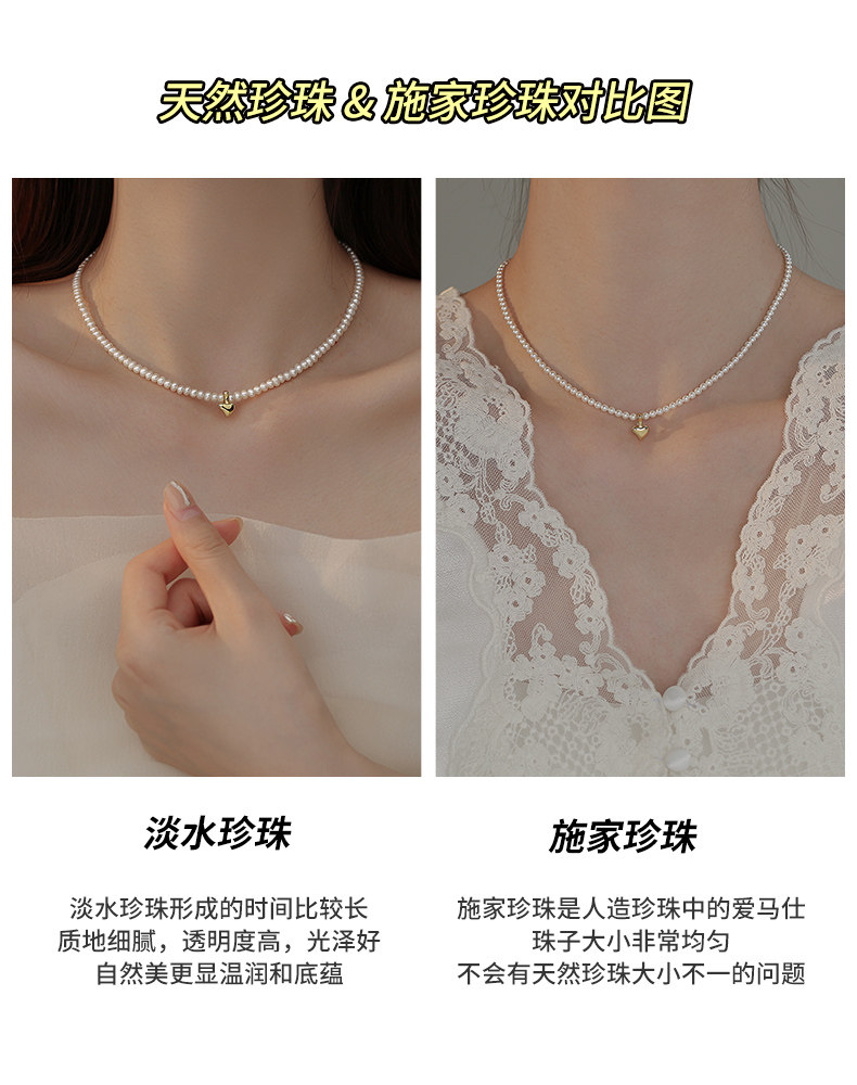 施家珍珠愛心吊墜項鍊頸鍊鎖骨鍊女小米珠法式高級新款