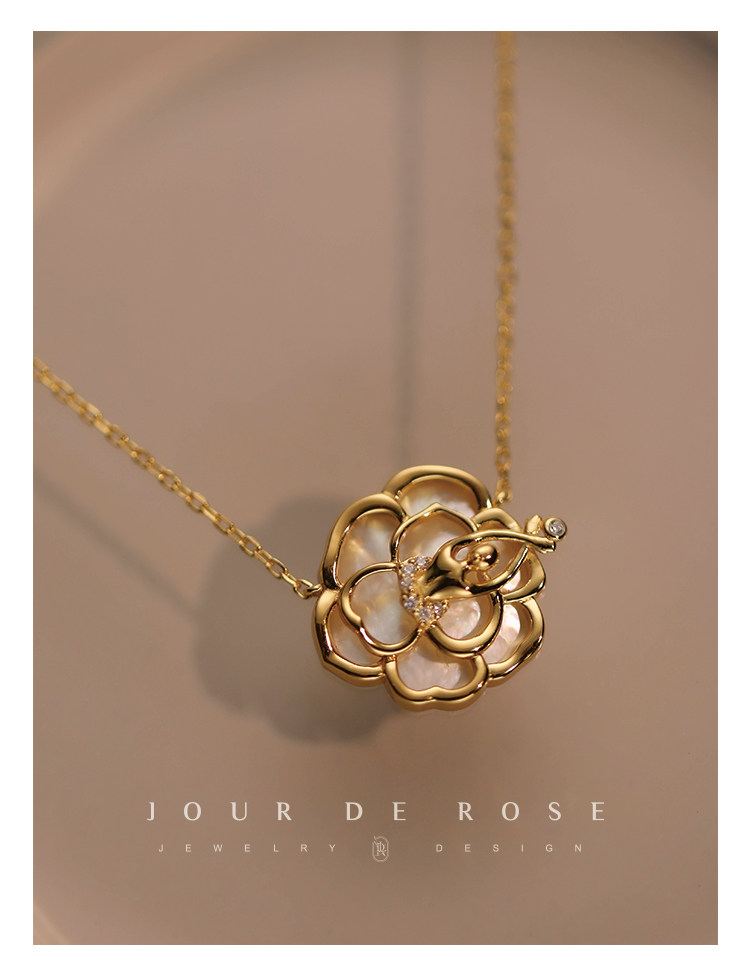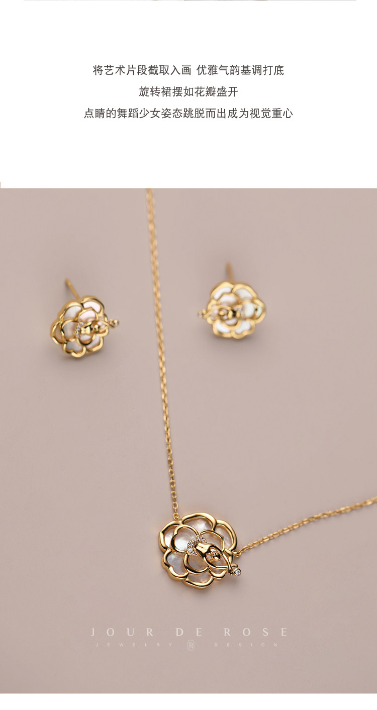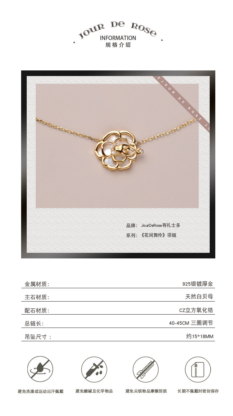 《花間舞伶》復古設計高級感輕奢芭蕾貝母純銀鍍金鎖骨頸項鍊原創