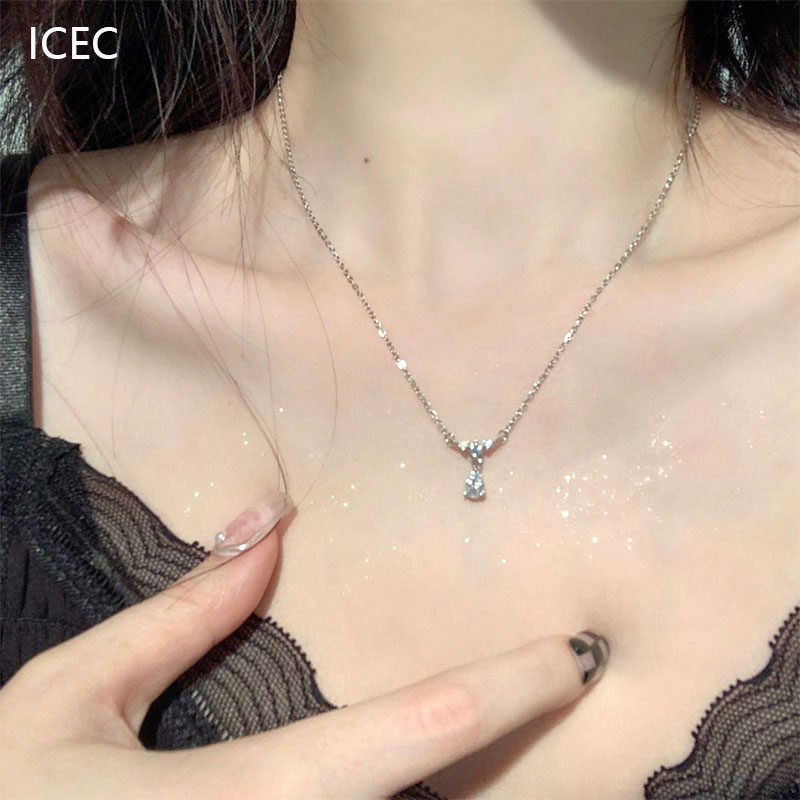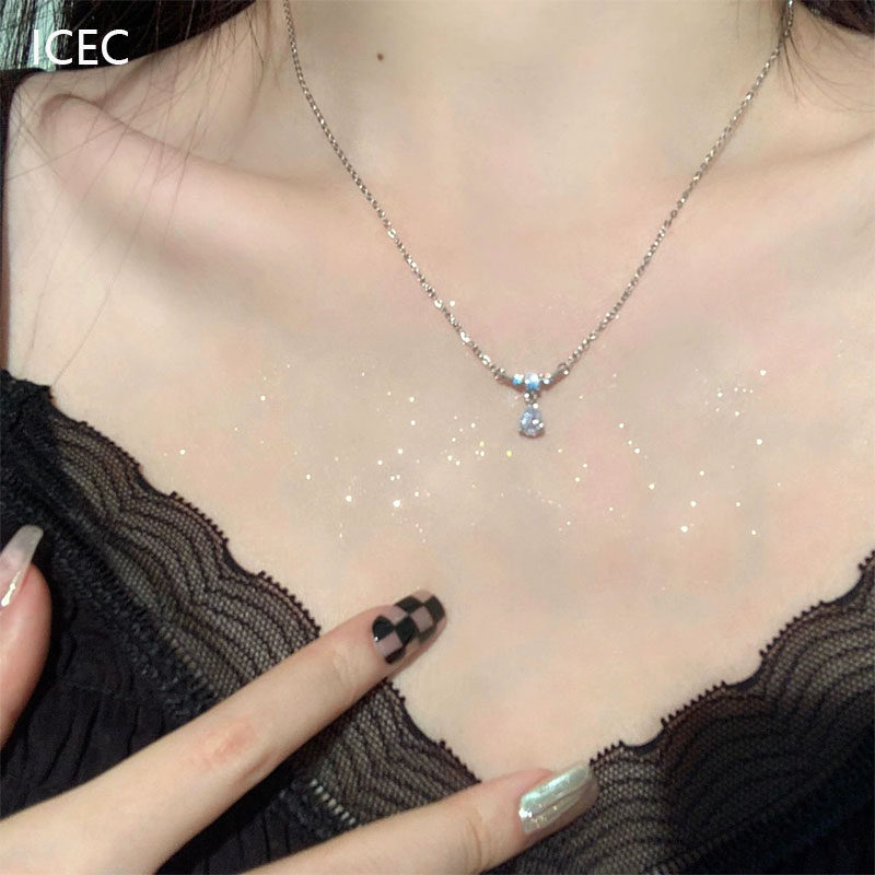 S925純銀簡約閃鉆吊墜項鍊氣質輕奢小眾高級設計感優雅鋯石鎖骨鍊