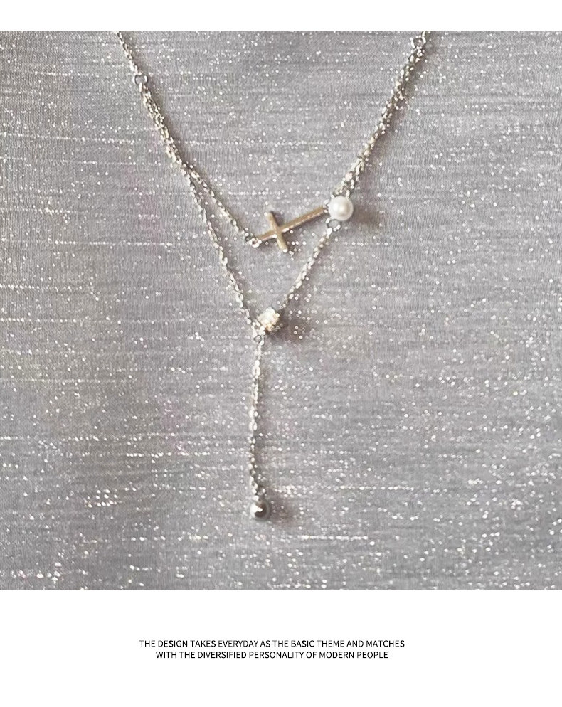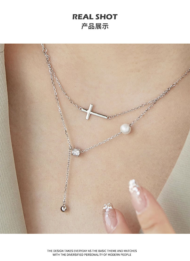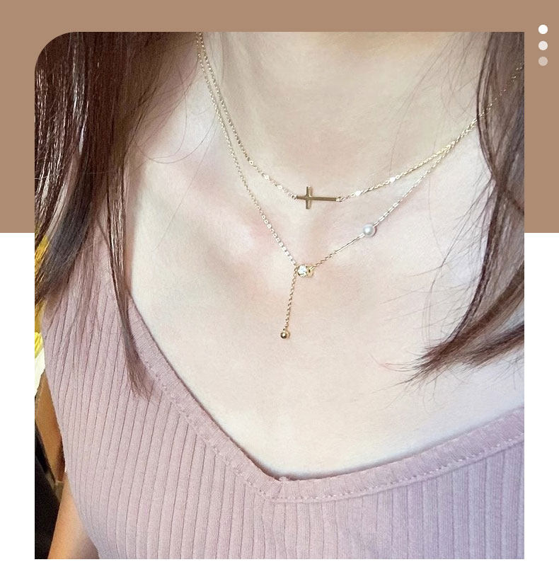 巴黎【設計師】doro小眾設計感雙層疊戴項鍊女十字鎖骨鍊輕奢百搭