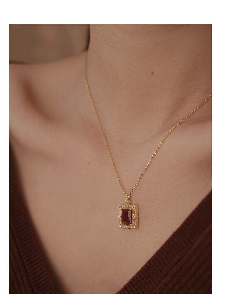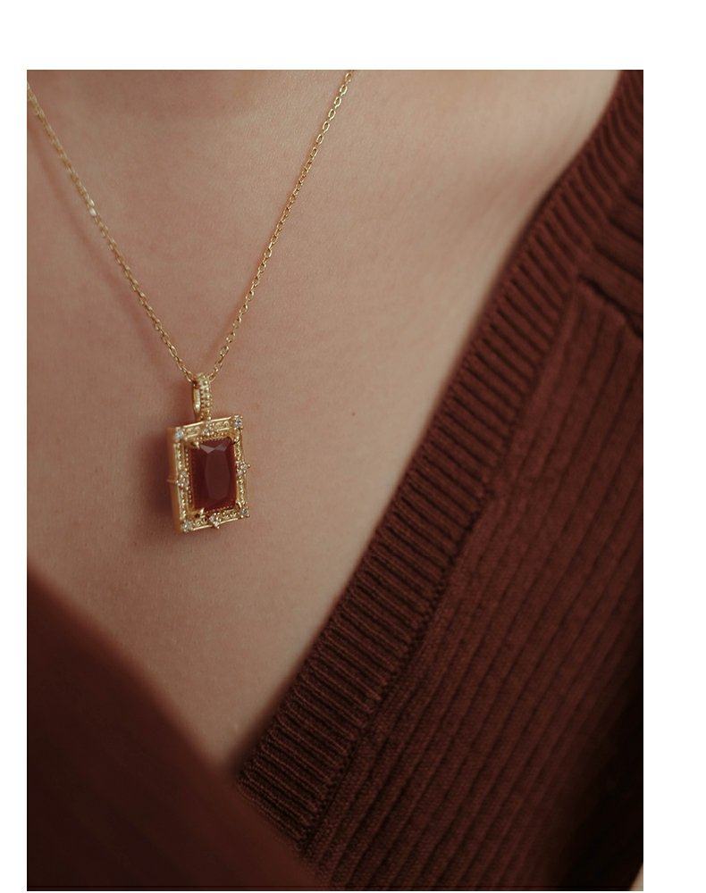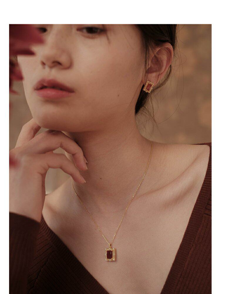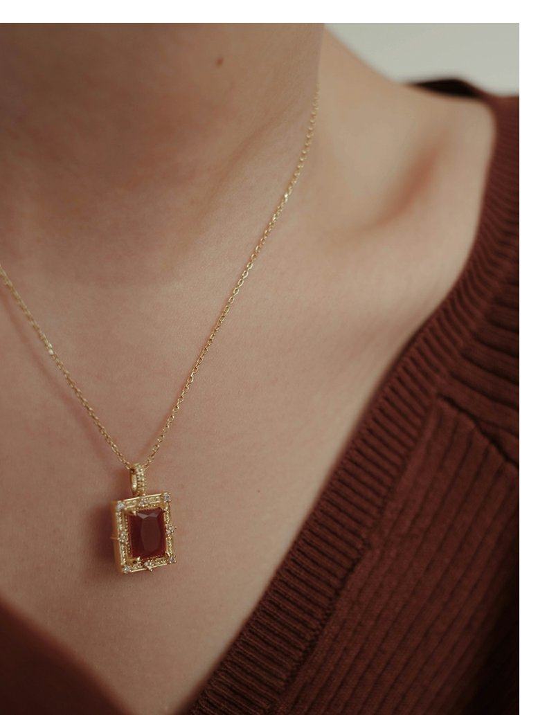 巴黎【設計師】doro相框紅瑪瑙吊墜復古宮廷輕奢高級華鎖骨項鍊女