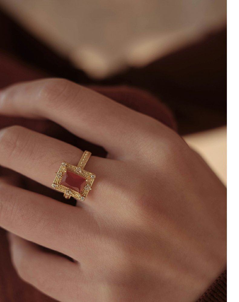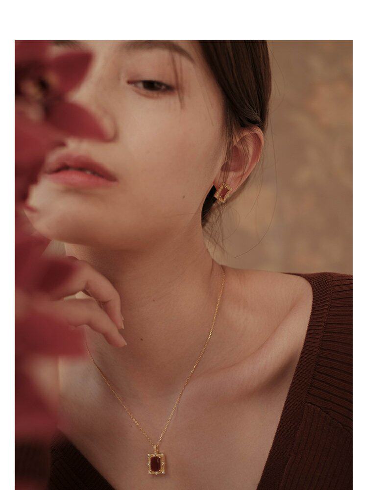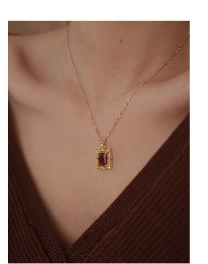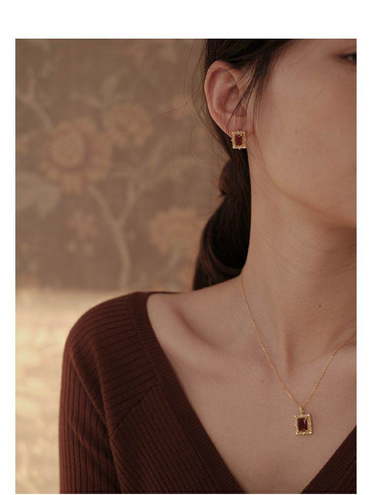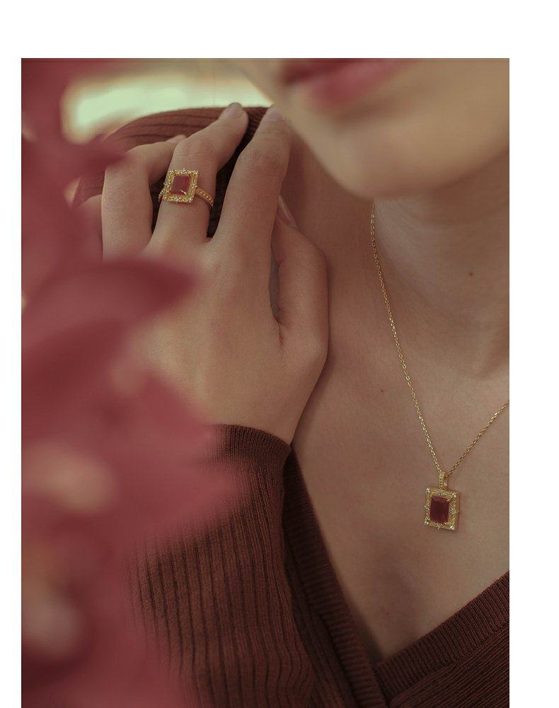 巴黎【設計師】doro相框紅瑪瑙吊墜復古宮廷輕奢高級華鎖骨項鍊女
