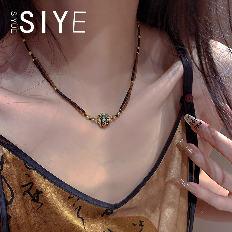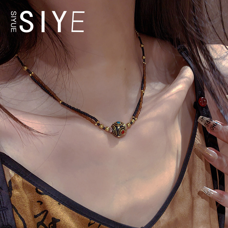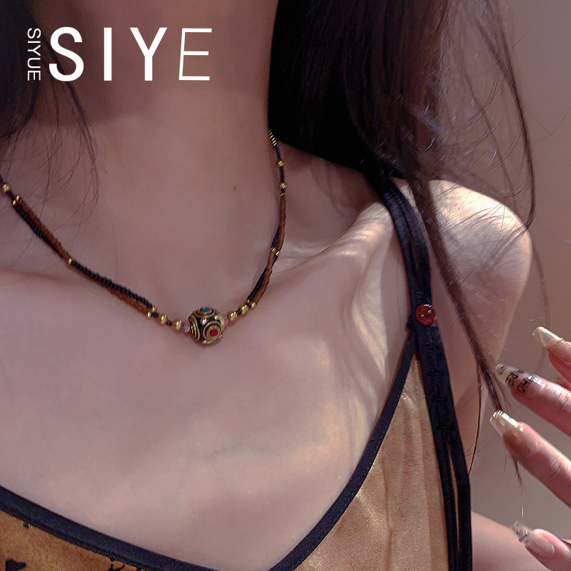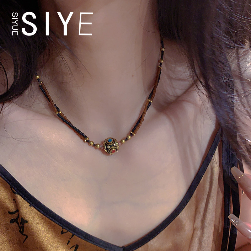新中式復古做舊藏式項鍊新款尼泊爾波西米亞異域風情鎖骨鍊