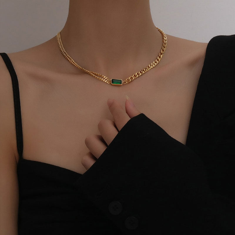 復古高級感簡約氣質個性綠幽靈項鍊女ins潮頸鍊冷淡風鎖骨鍊