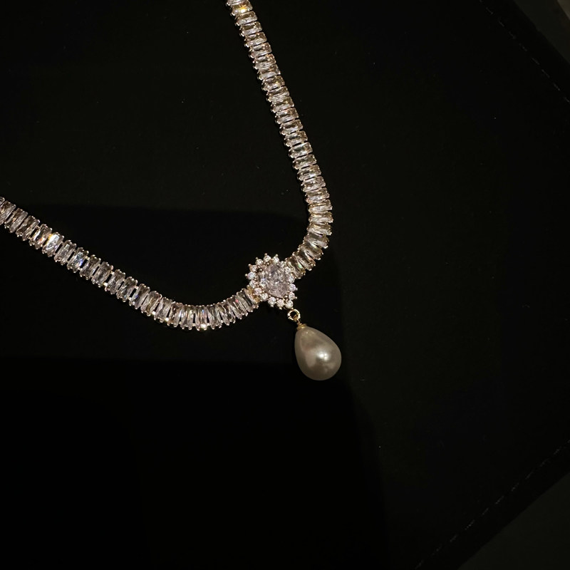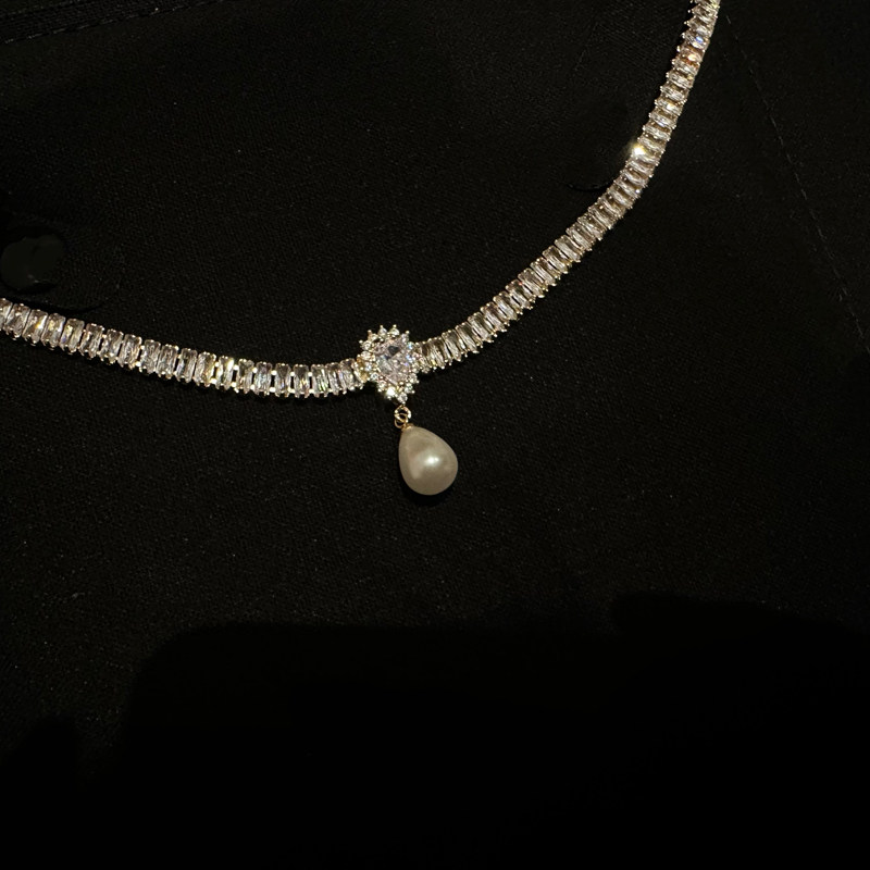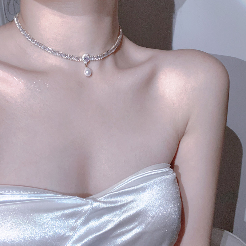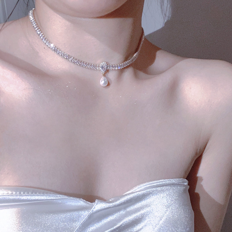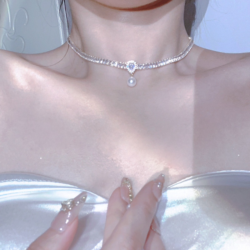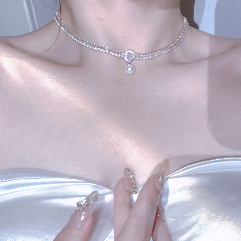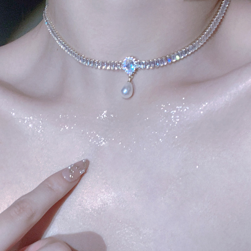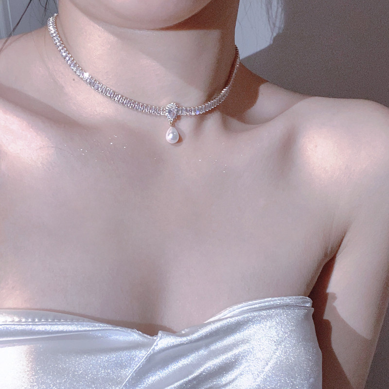 在逃公主水晶項鍊女輕奢小眾珍珠鎖骨鍊小眾頸鍊配飾
