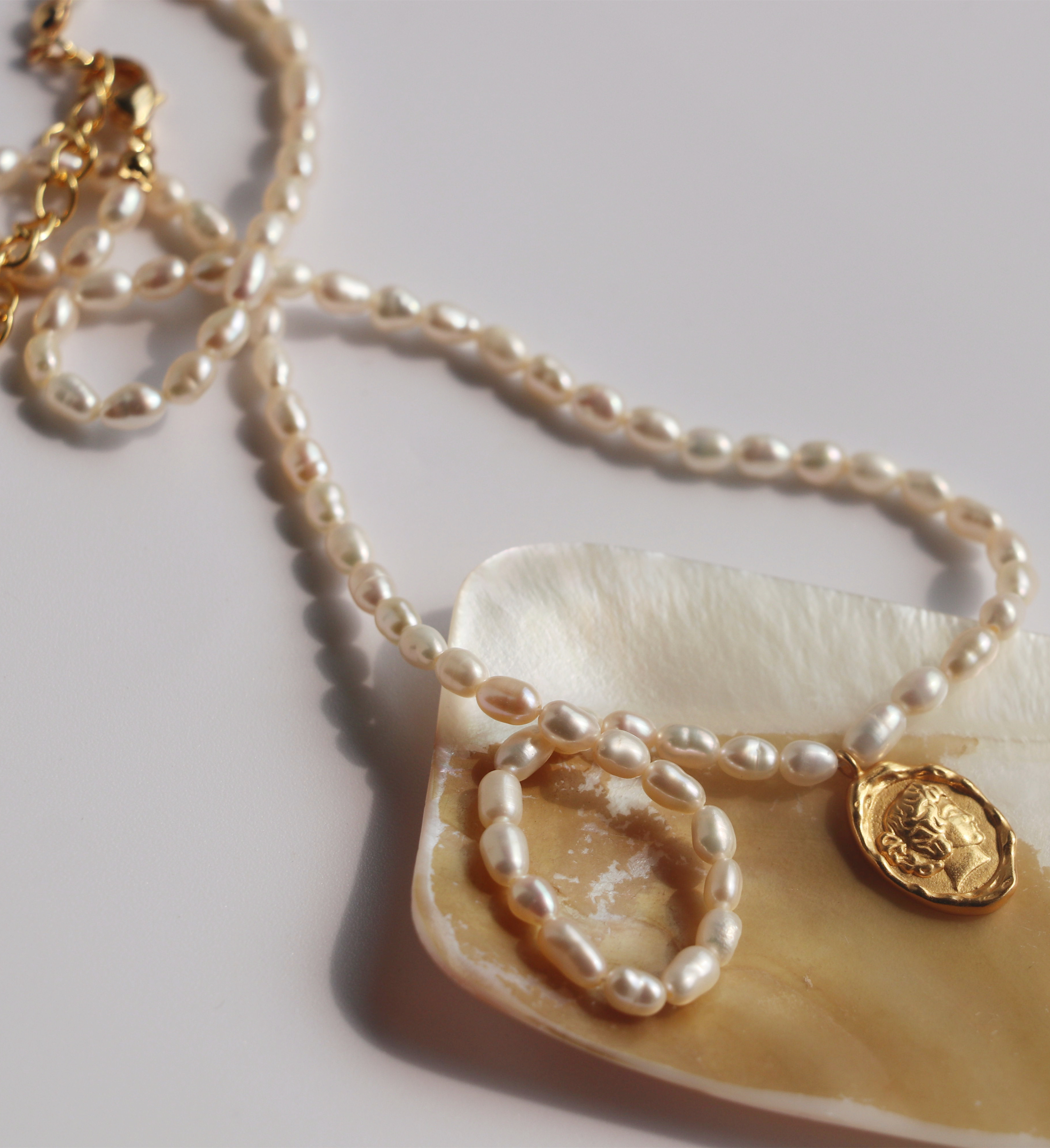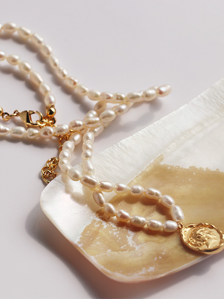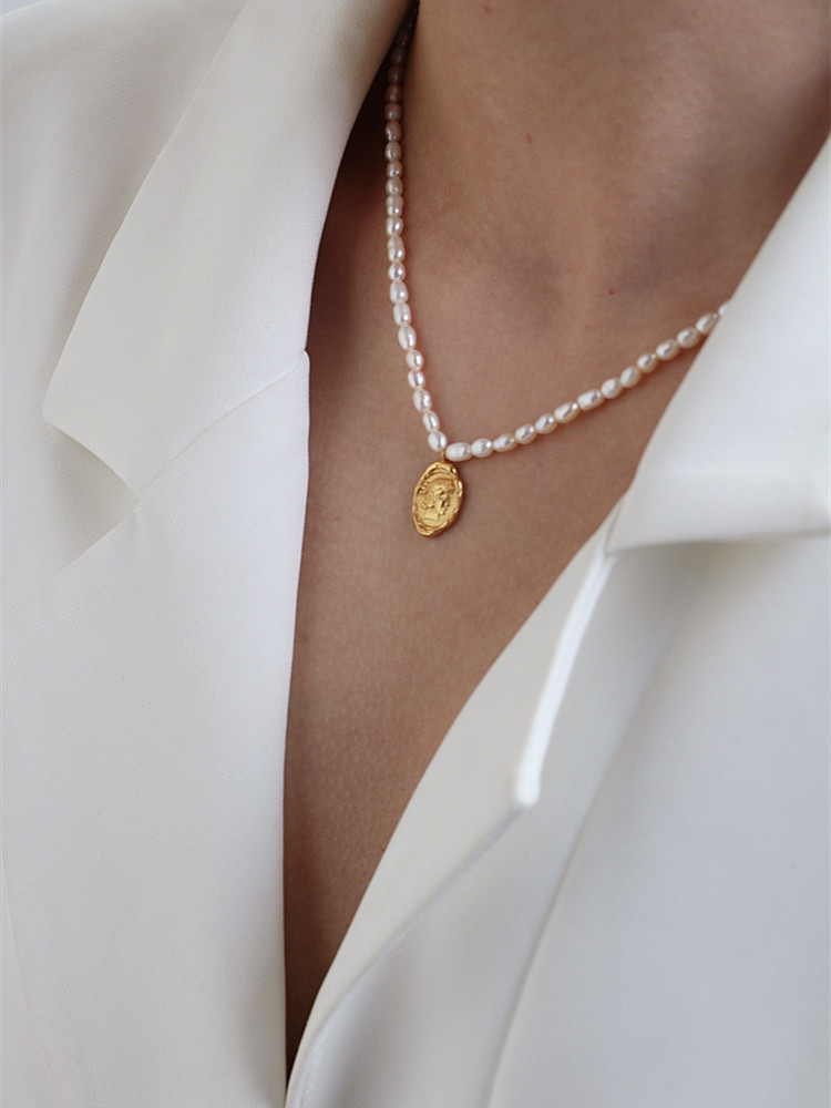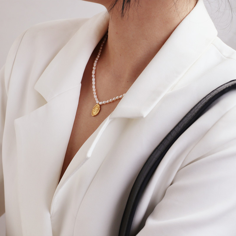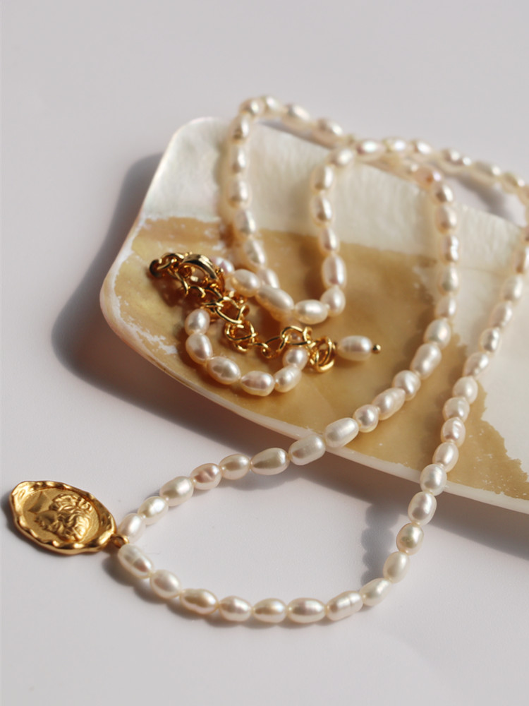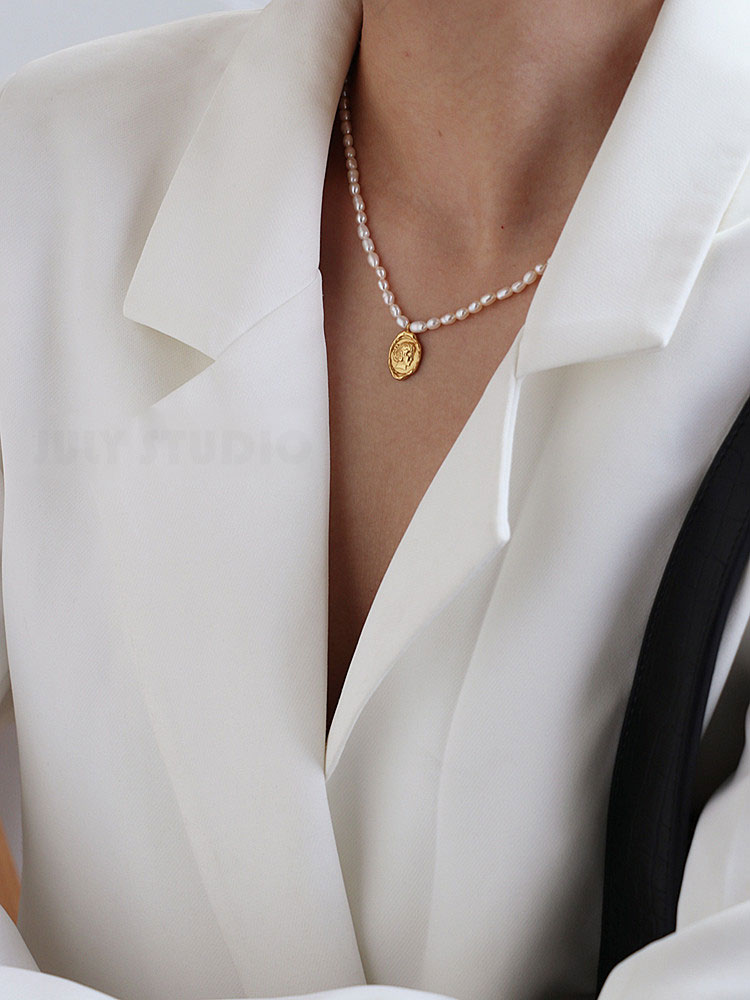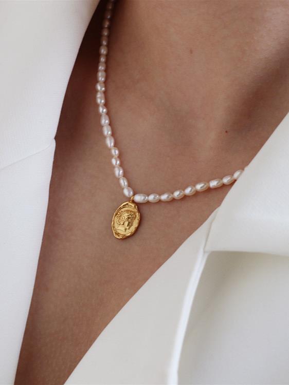 歐美簡約復古女王金幣項鍊ins輕奢小眾設計天然珍珠鎖骨鍊潮