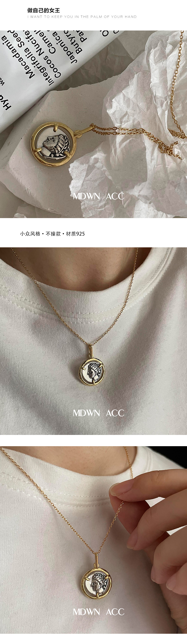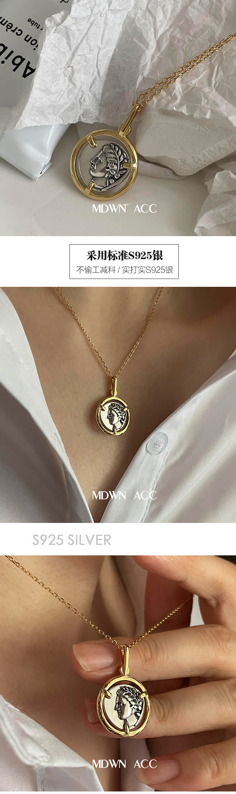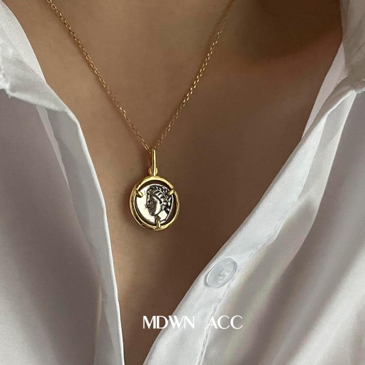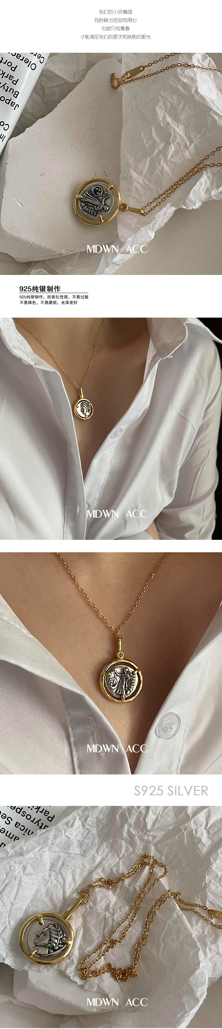 925純銀鍍金鑲嵌古幣款式項鍊女 時尚個性歐美潮流街頭疊搭鎖骨鍊