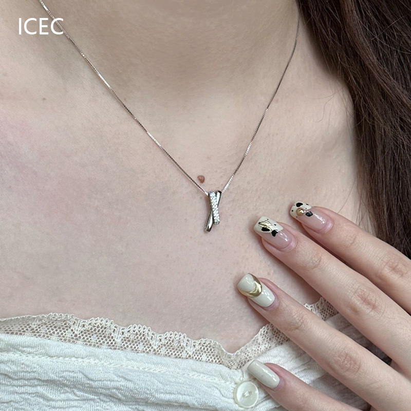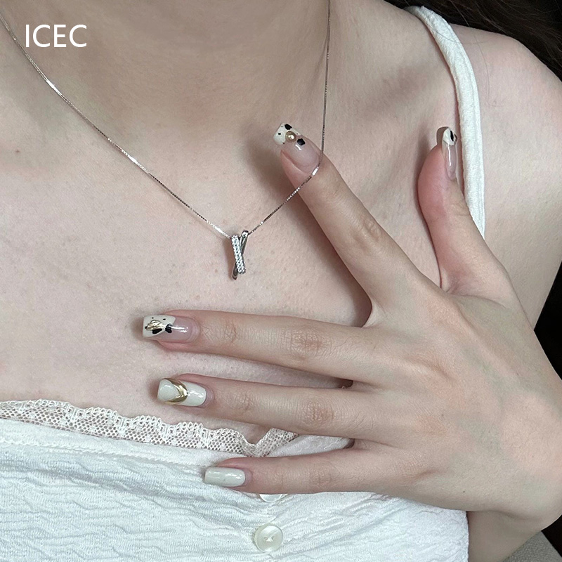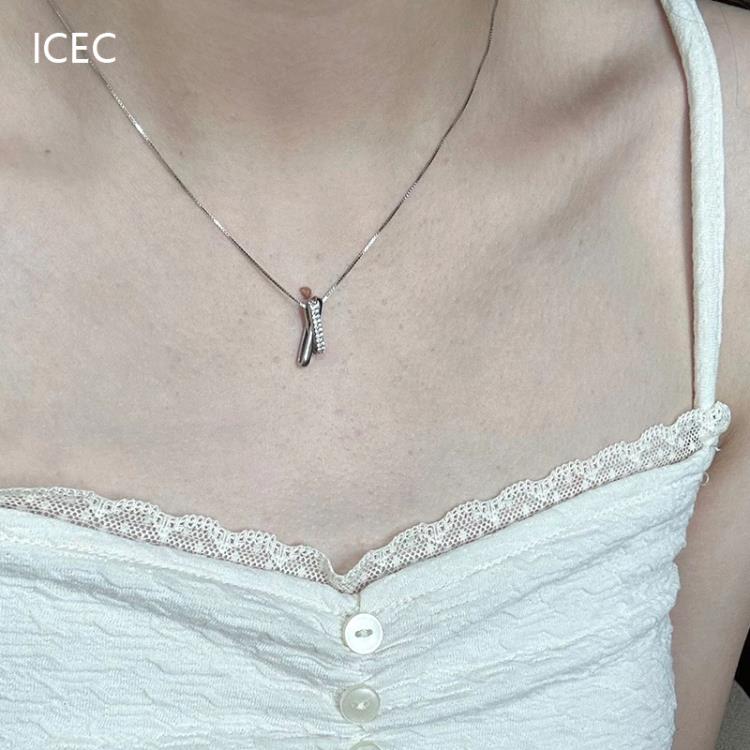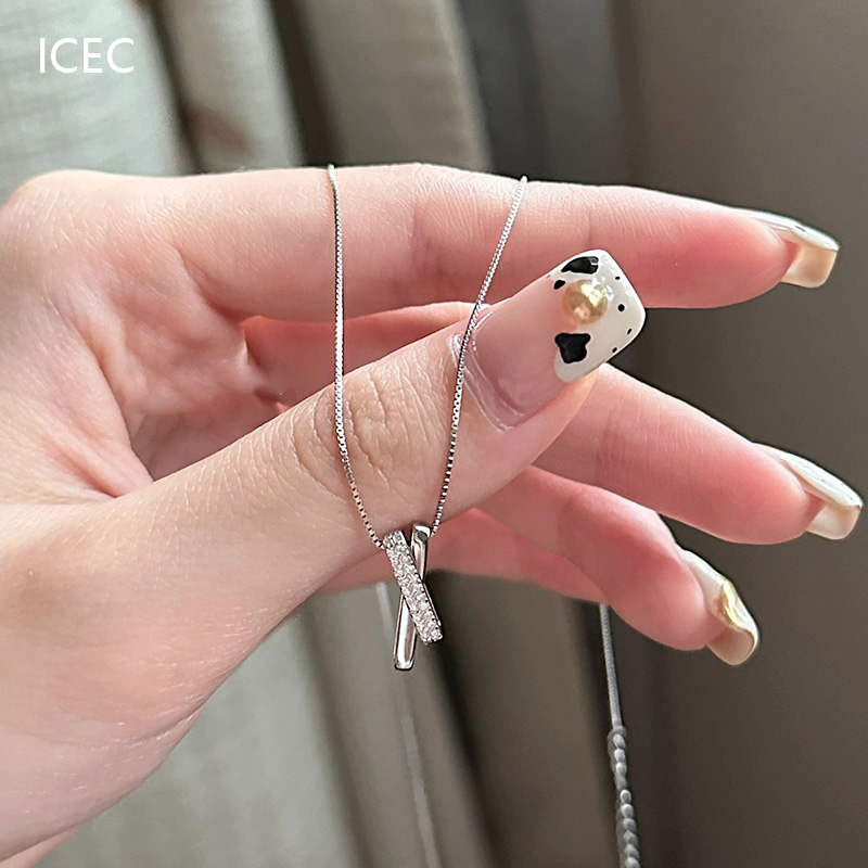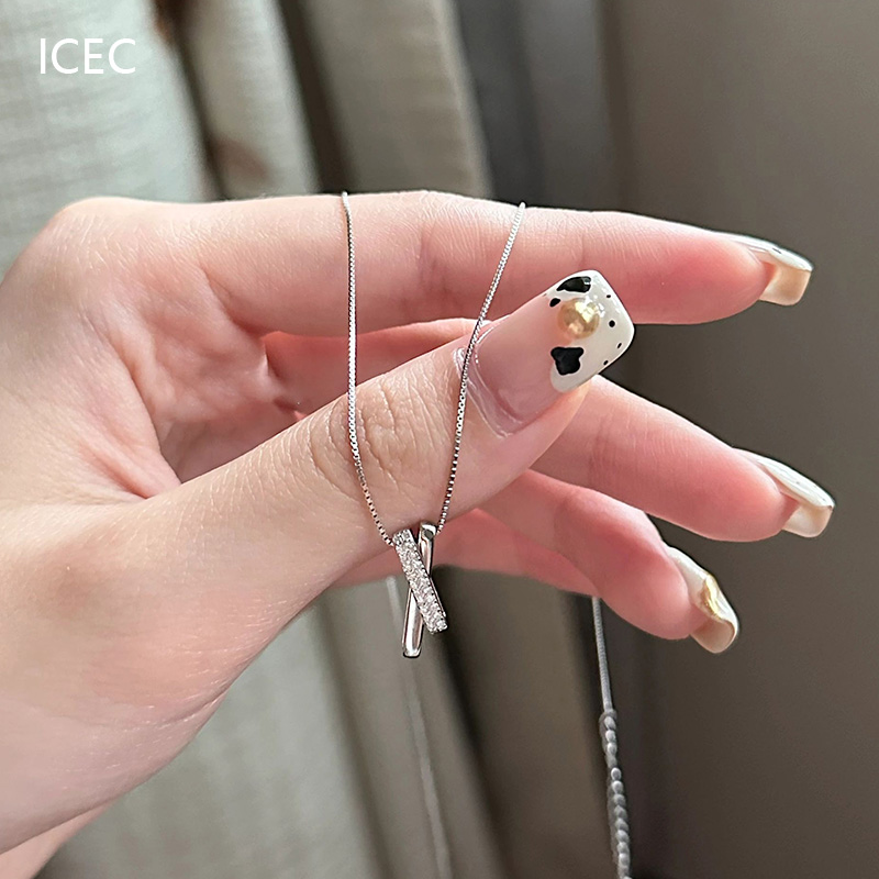 S925純銀幾何交叉項鍊女法式小眾設計高級感超閃鎖骨鍊爆款潮