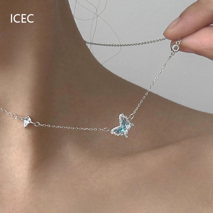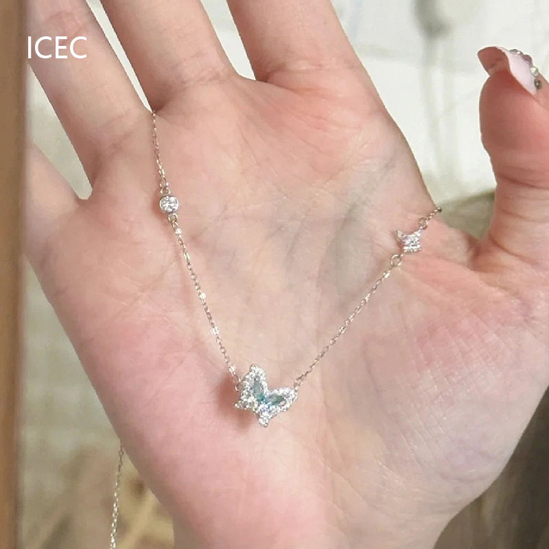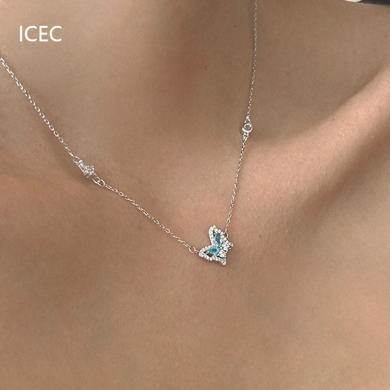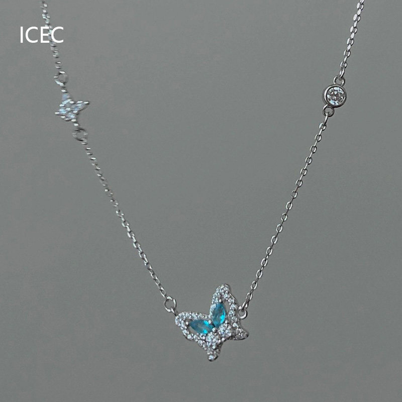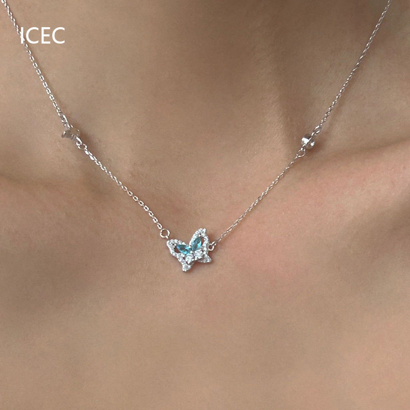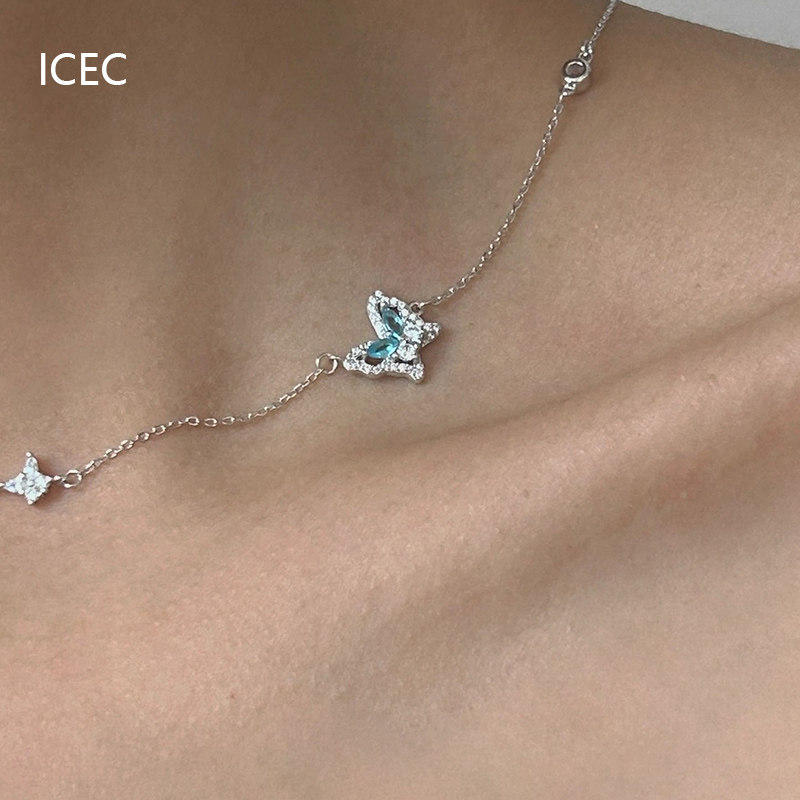 法式冰心藍蝴蝶設計師項鍊小眾設計簡約清冷感S925純銀甜酷鎖骨鍊