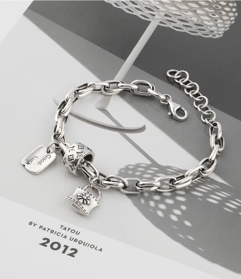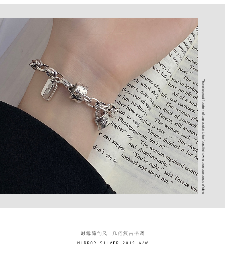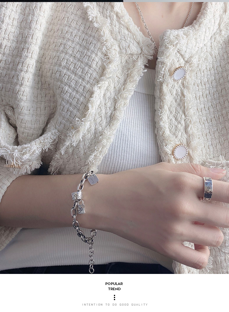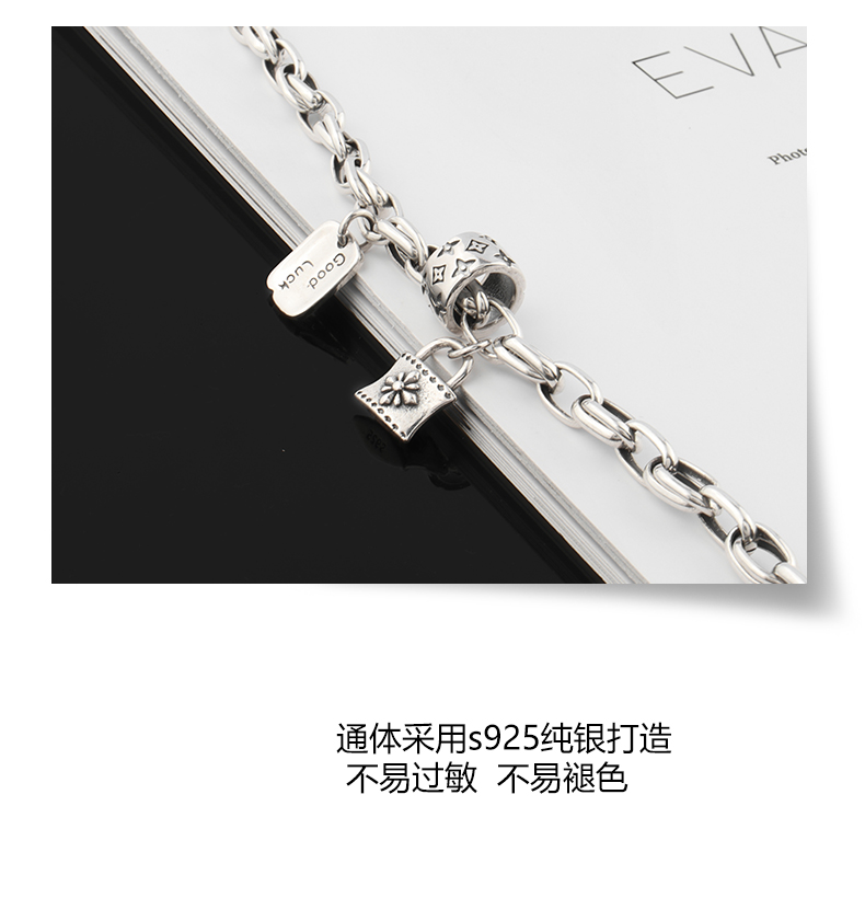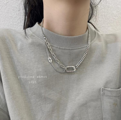 韓國s925純銀方框項鍊女輕奢高級設計感t恤鎖骨鍊個性銀飾