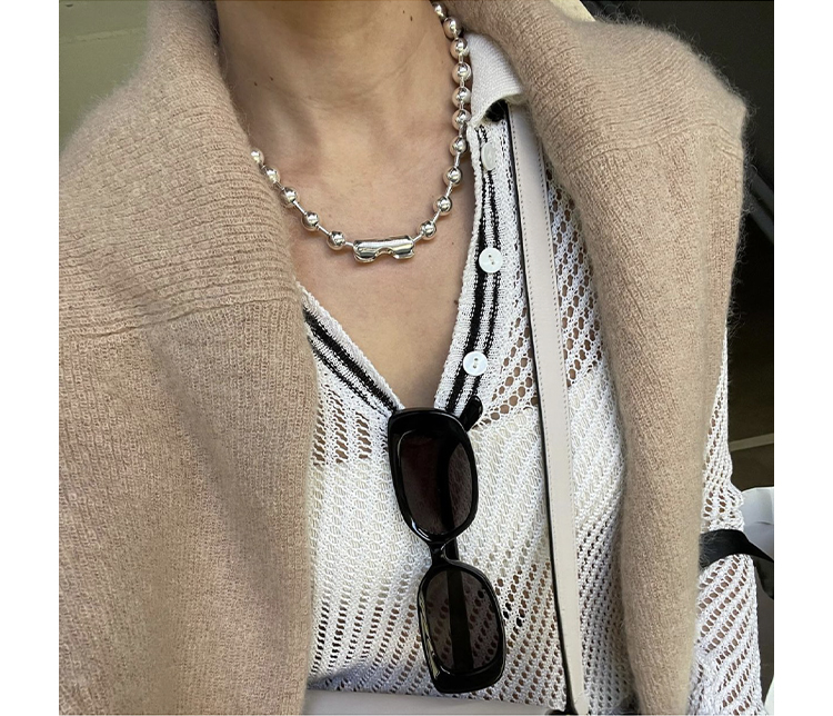 歐美金屬圓球珠珠項鍊簡約百搭高級設計基礎款頸鍊鎖骨鍊