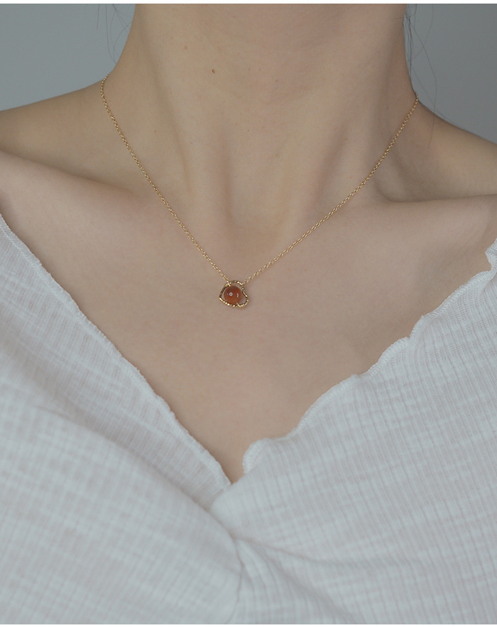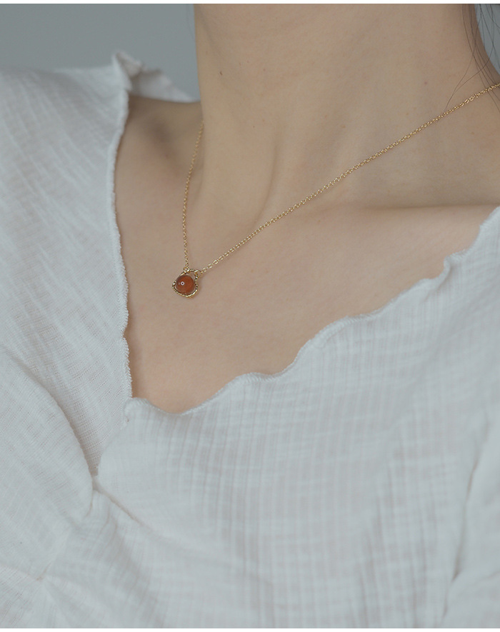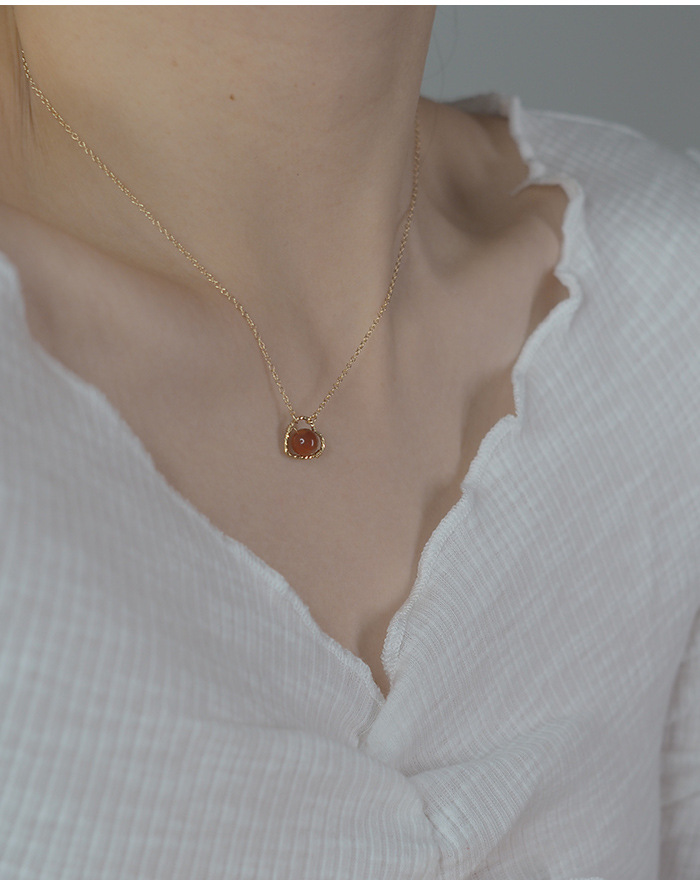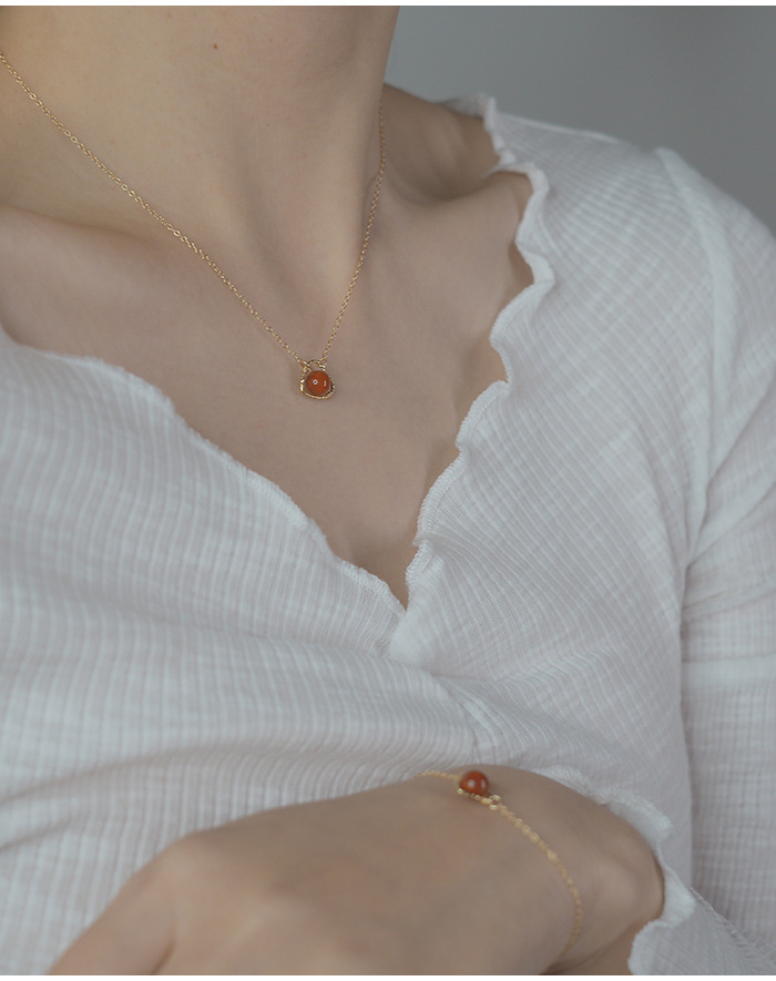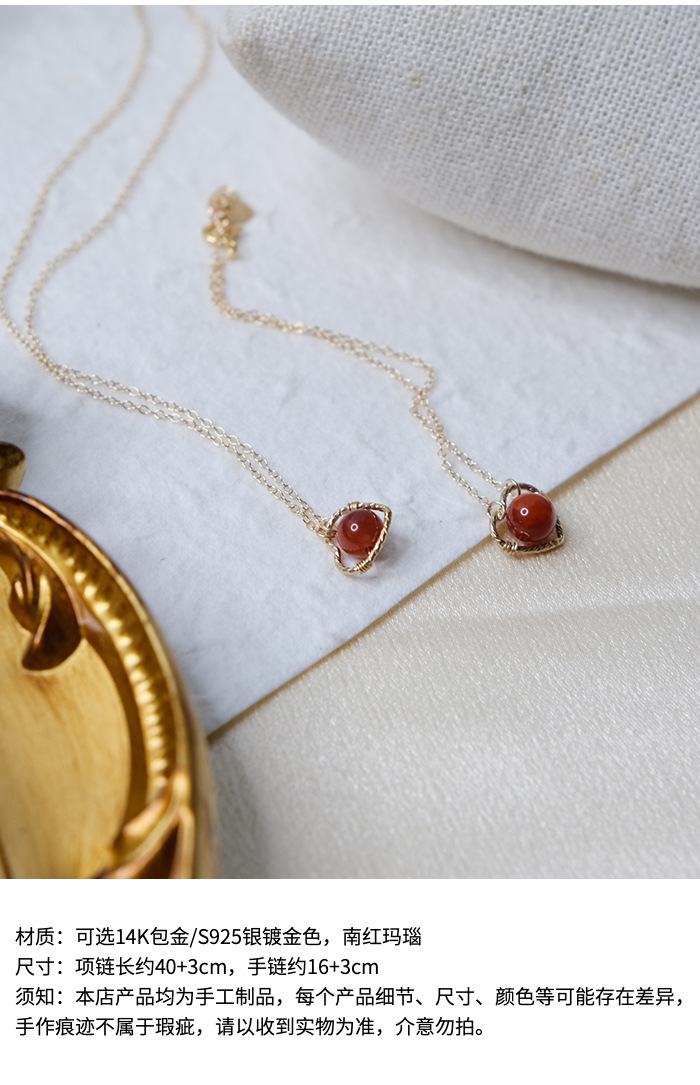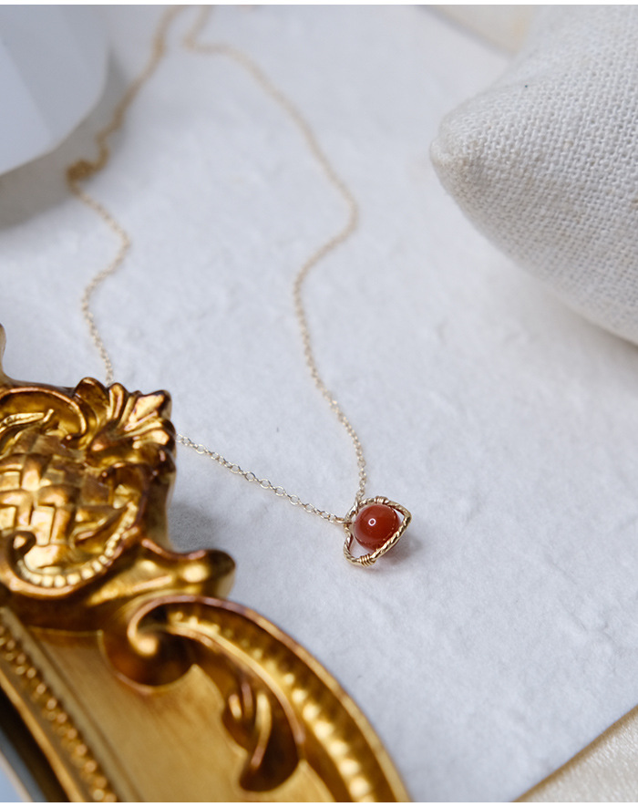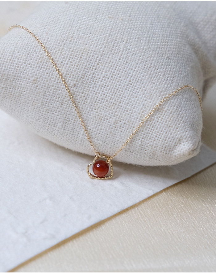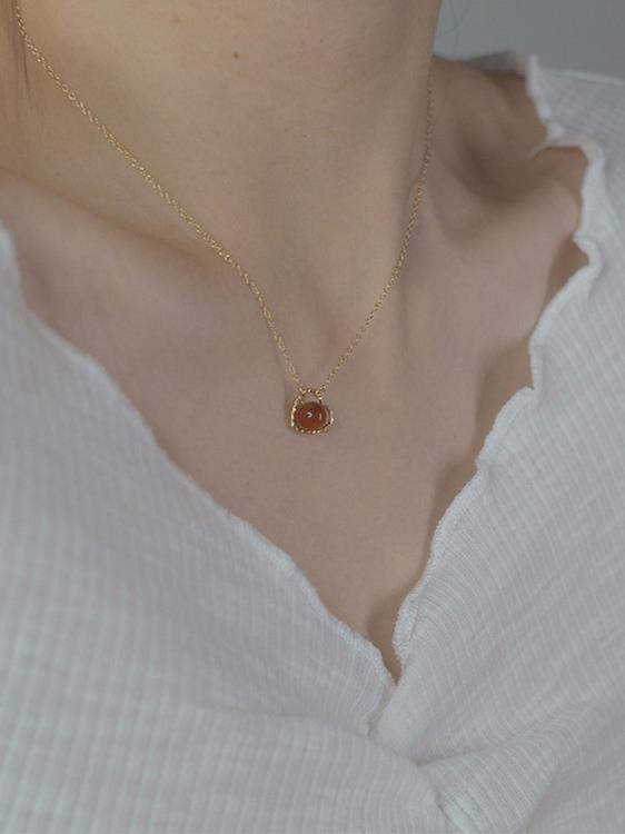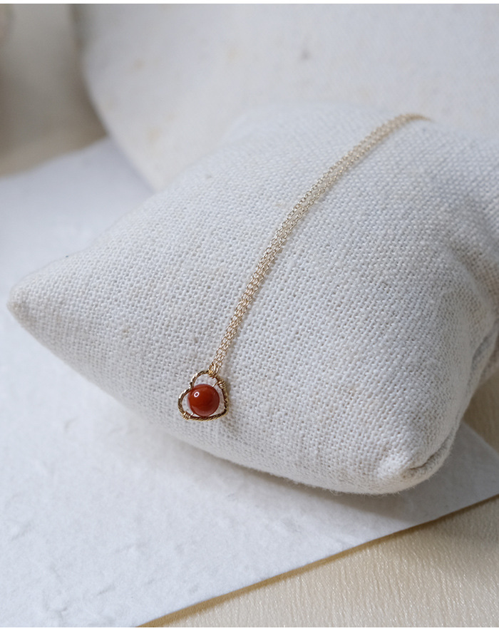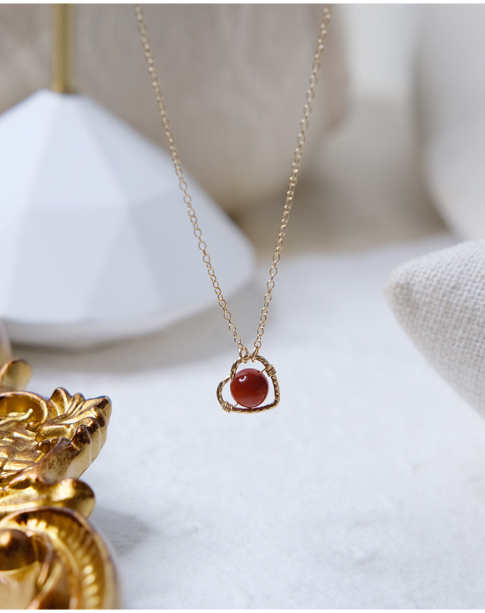 手作南紅瑪瑙愛心項鍊14k包金鎖骨鍊復古甜美氣質小眾設計女