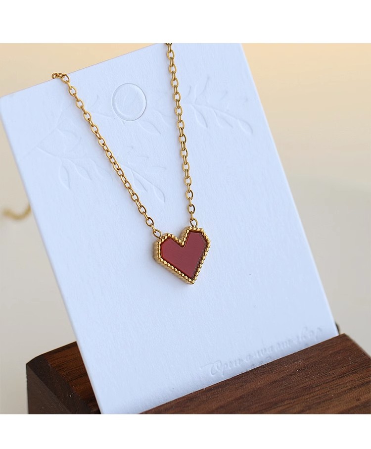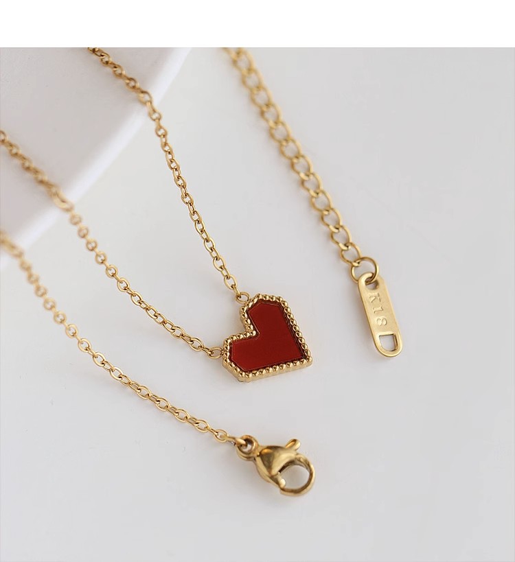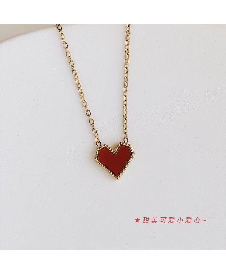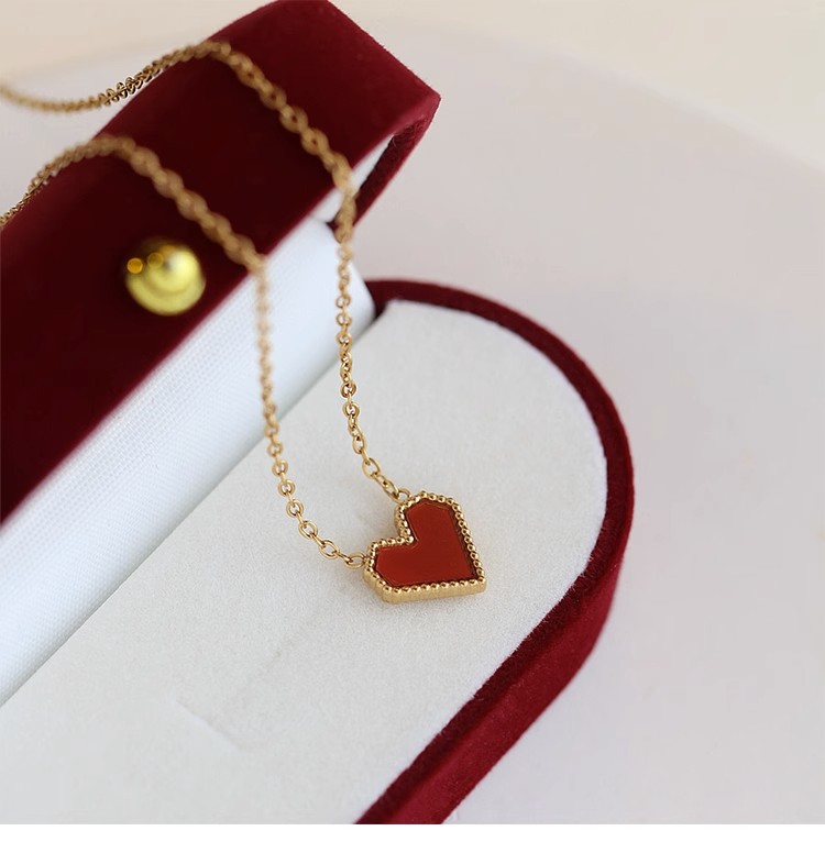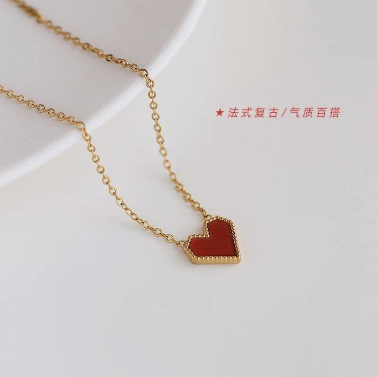 法式復古紅色愛心項鍊輕奢小眾時尚百搭高級感鎖骨鍊