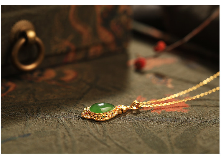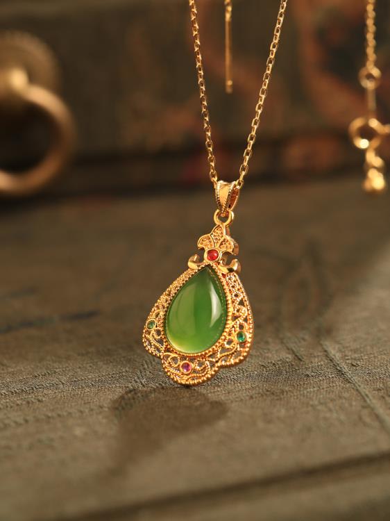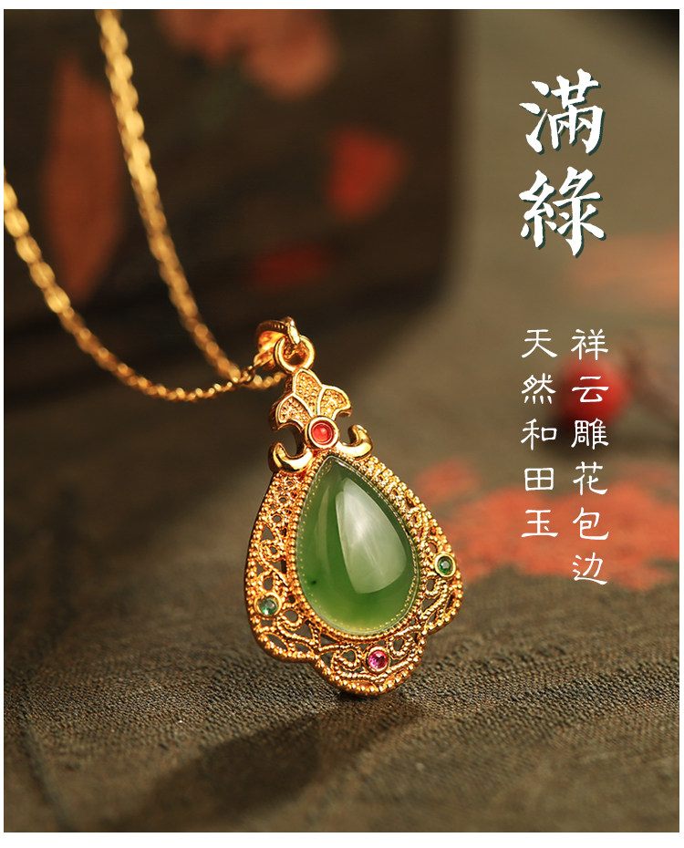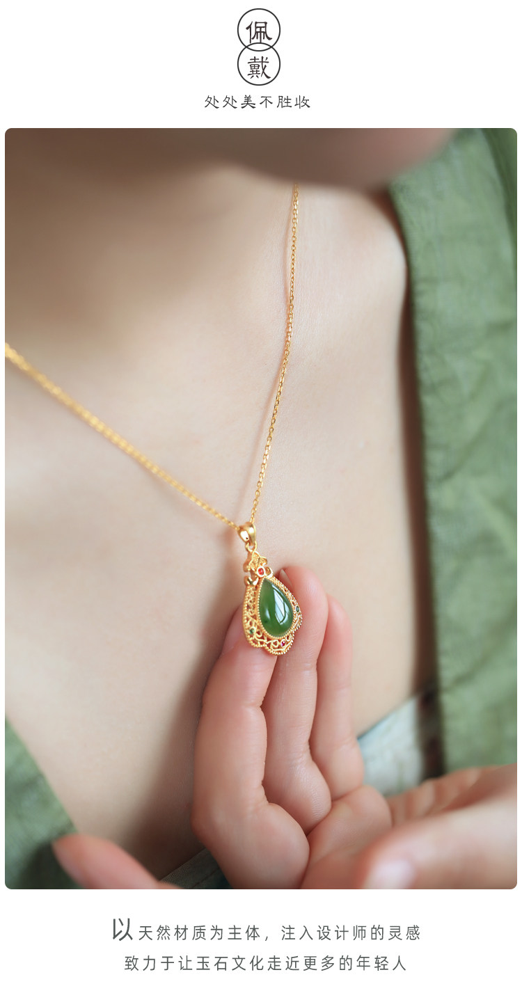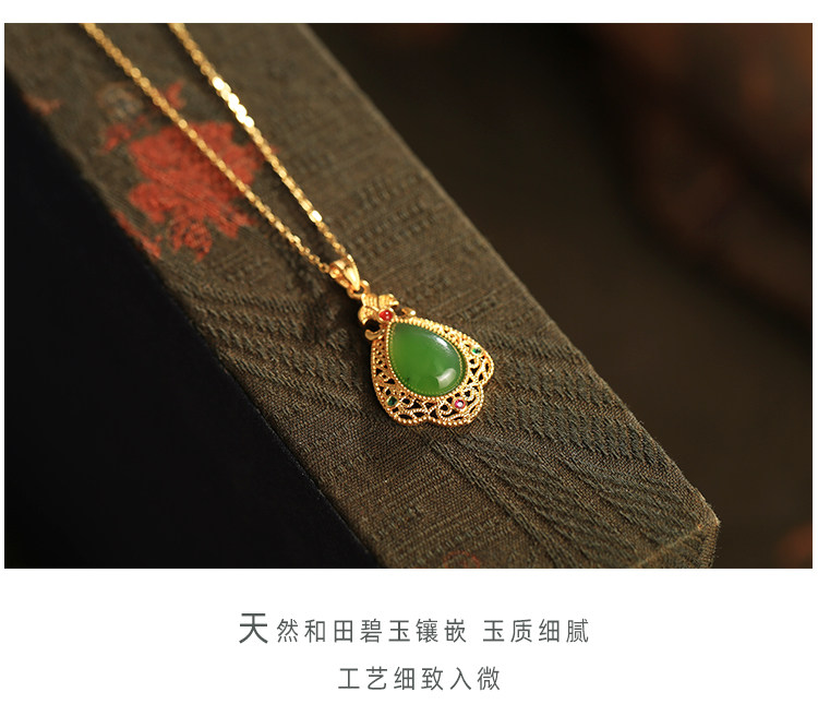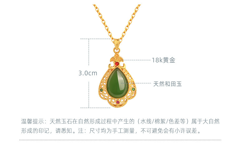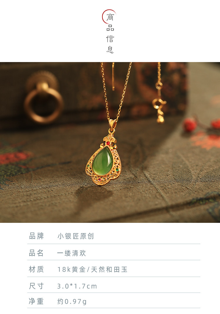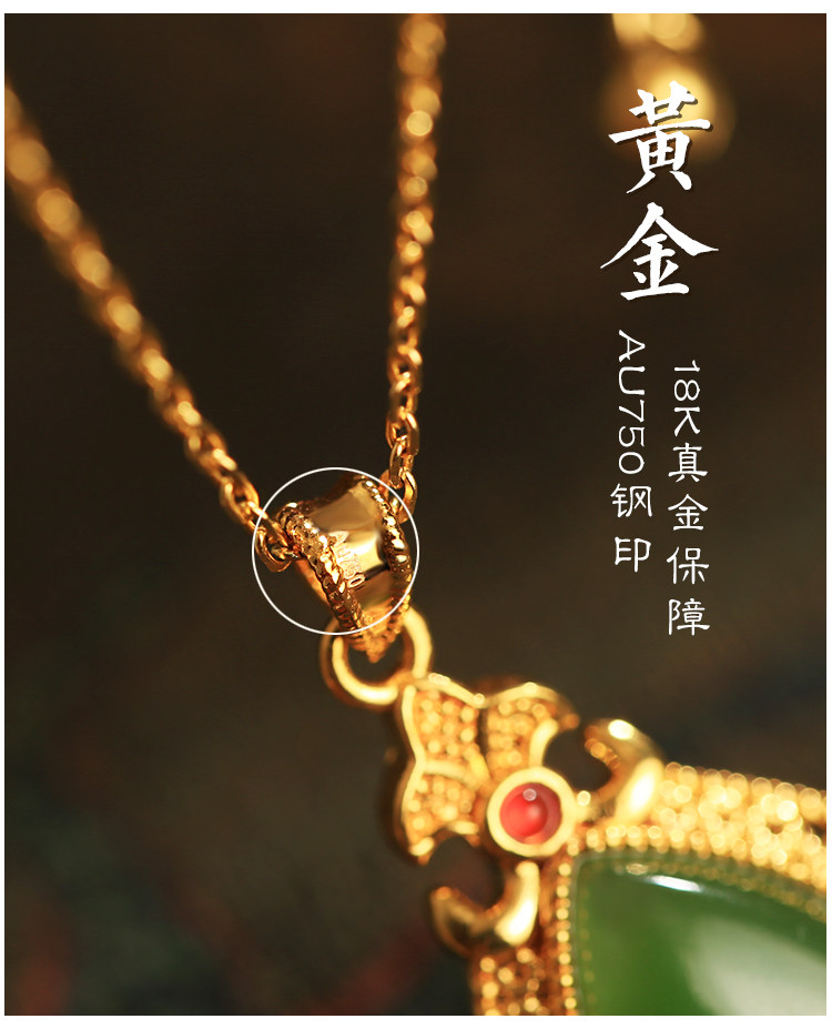 和闐玉碧玉新款18k黃金吊墜女 金鑲玉墜子項鍊女輕奢小眾設計