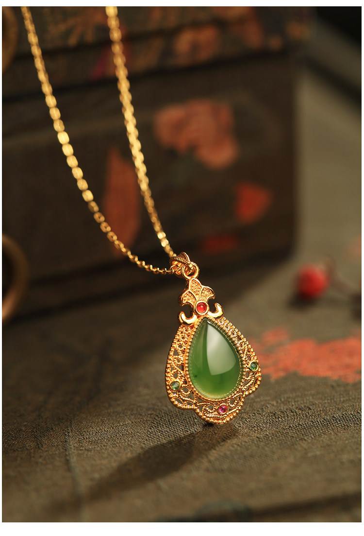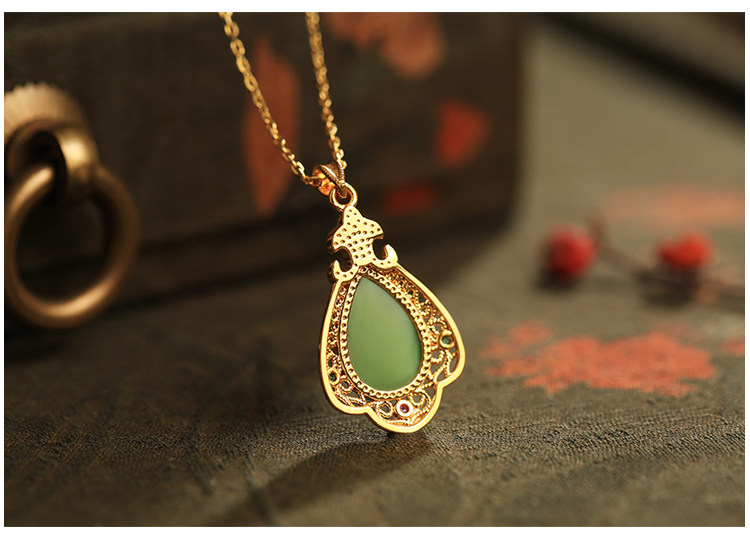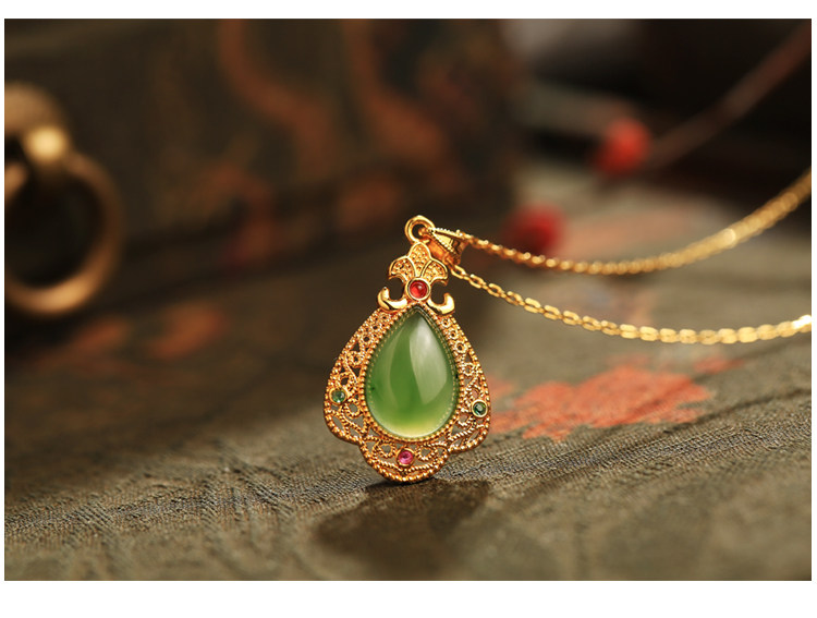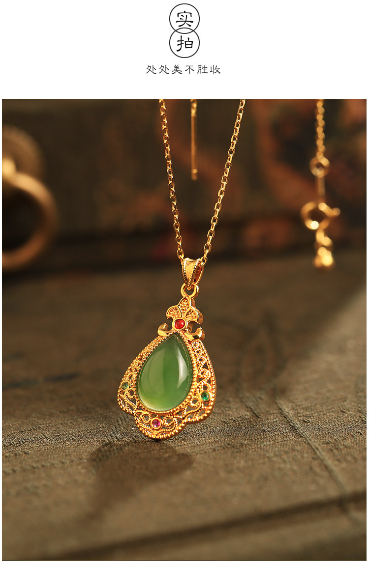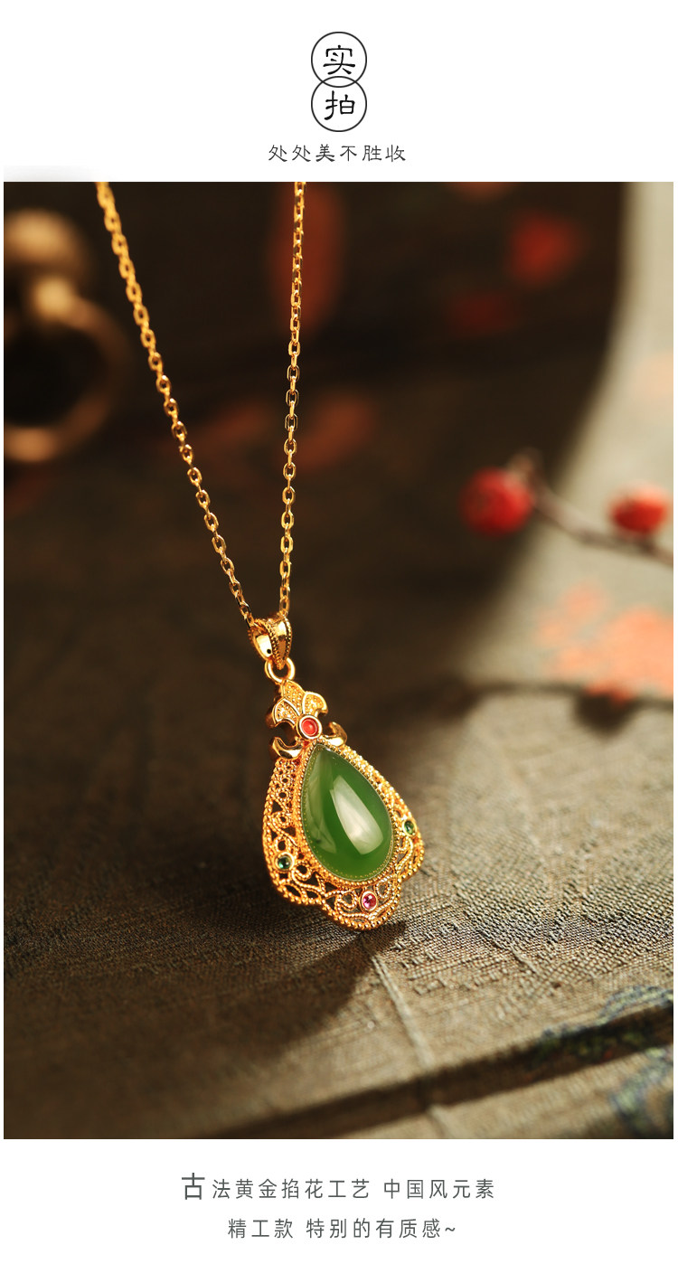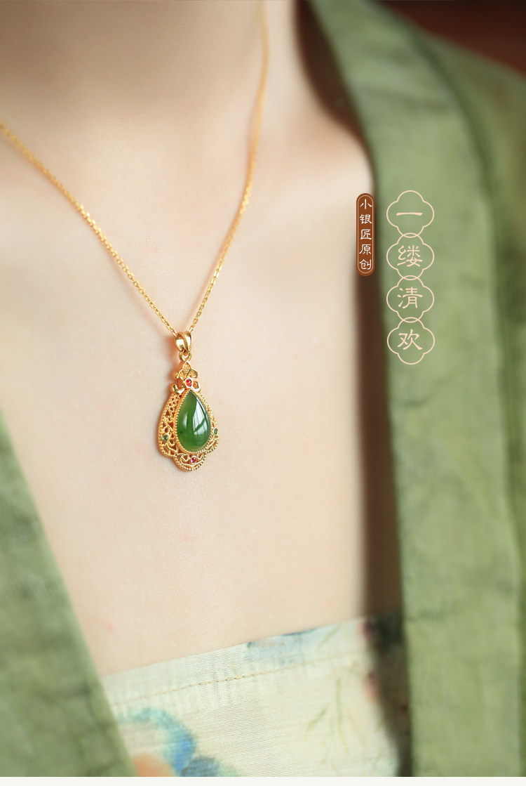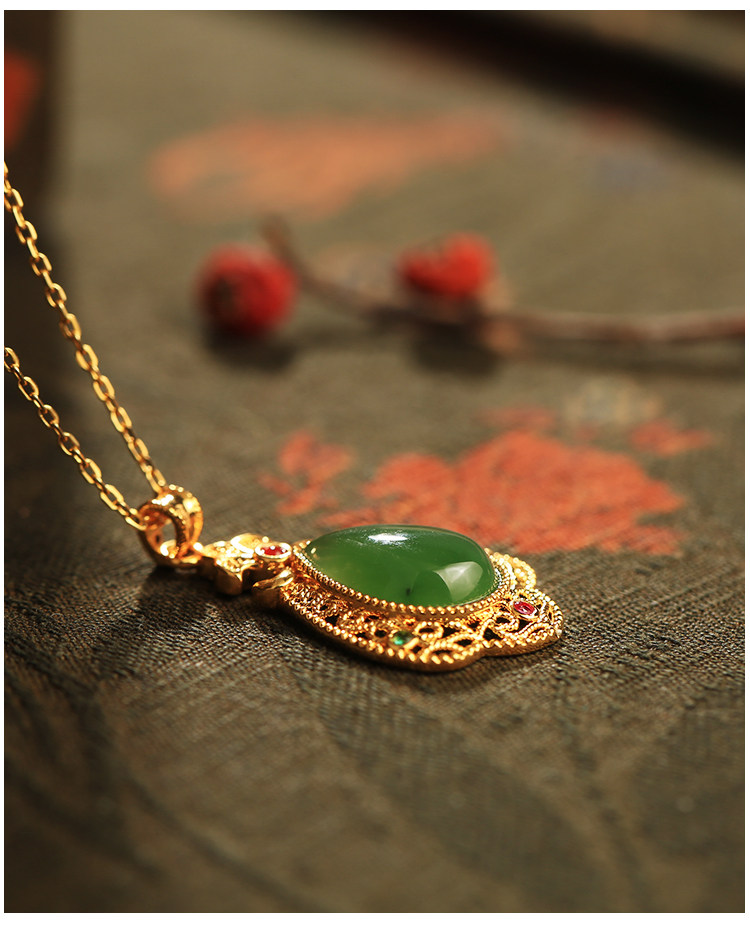 和闐玉碧玉新款18k黃金吊墜女 金鑲玉墜子項鍊女輕奢小眾設計