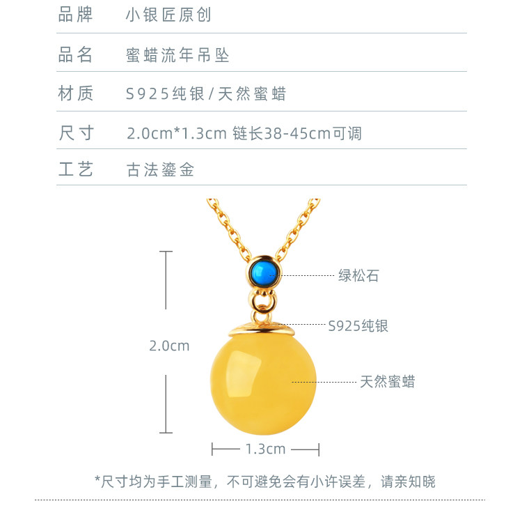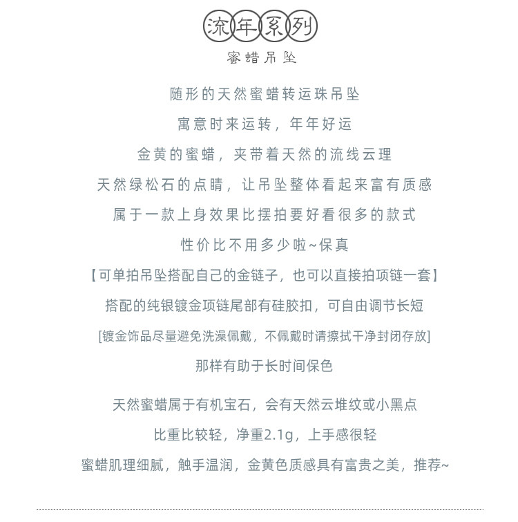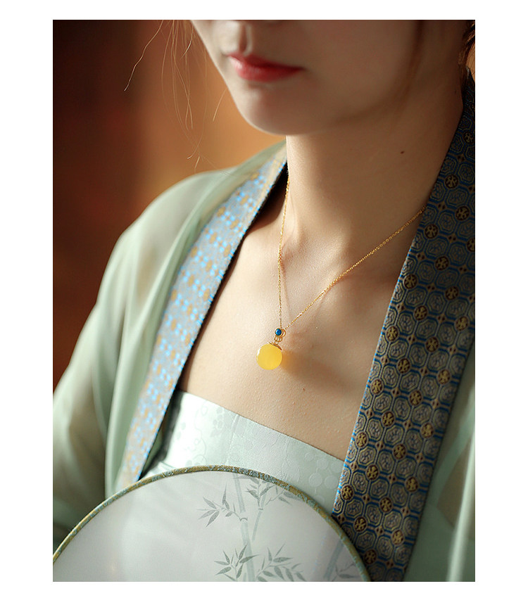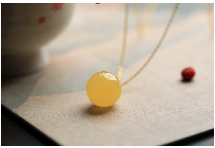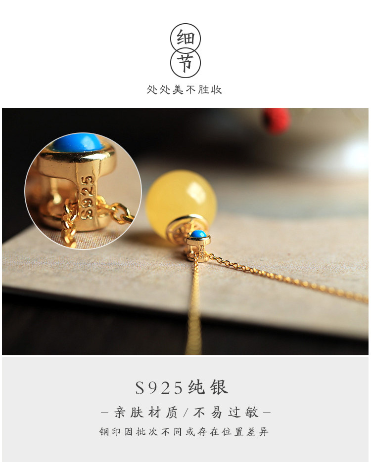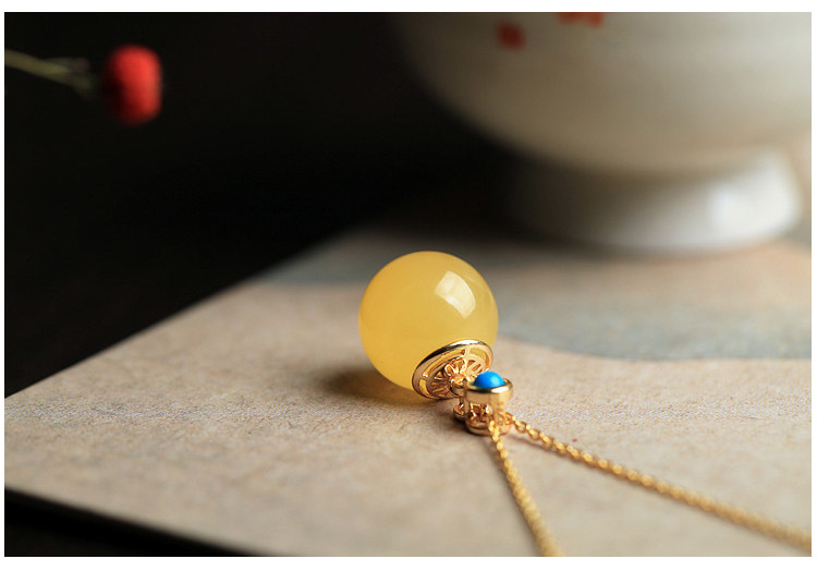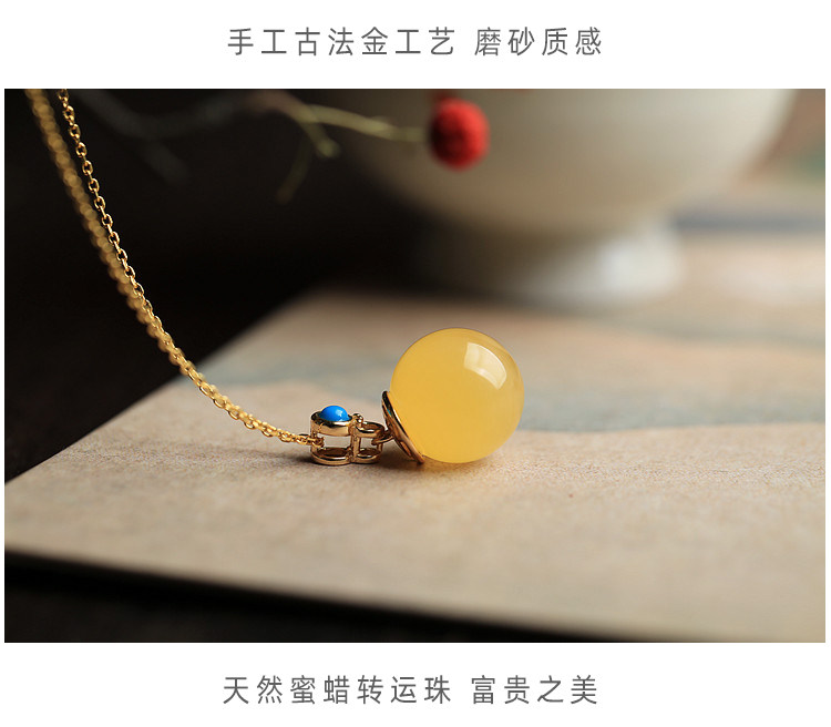 中國風轉運珠純銀古法金鑲蜜蠟琥珀玉石吊墜女氣質水晶項鍊