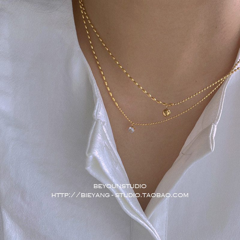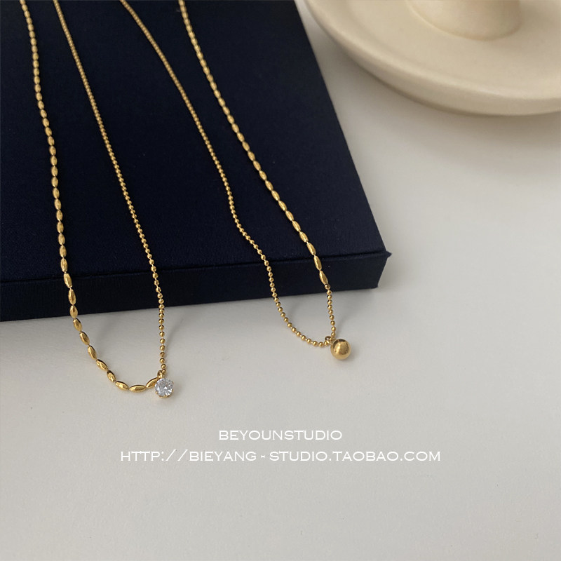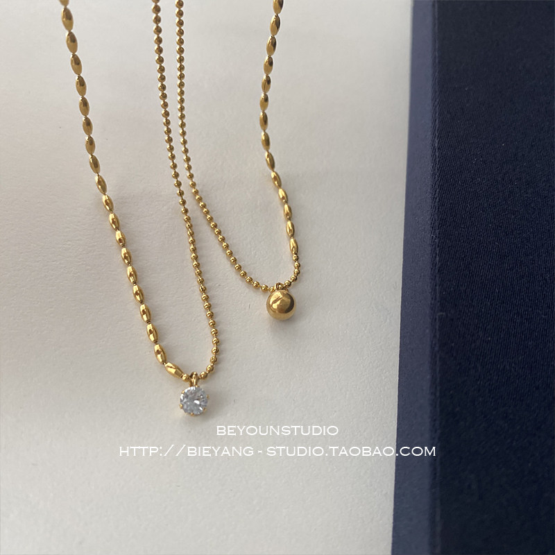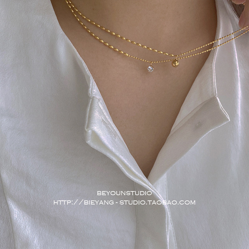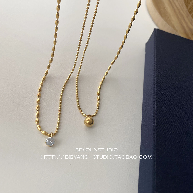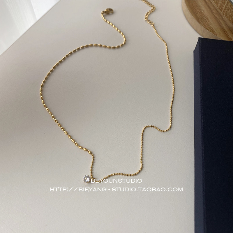 E666氣質簡約不對稱設計圓珠鋯石高級感精致時尚百搭金色項鍊